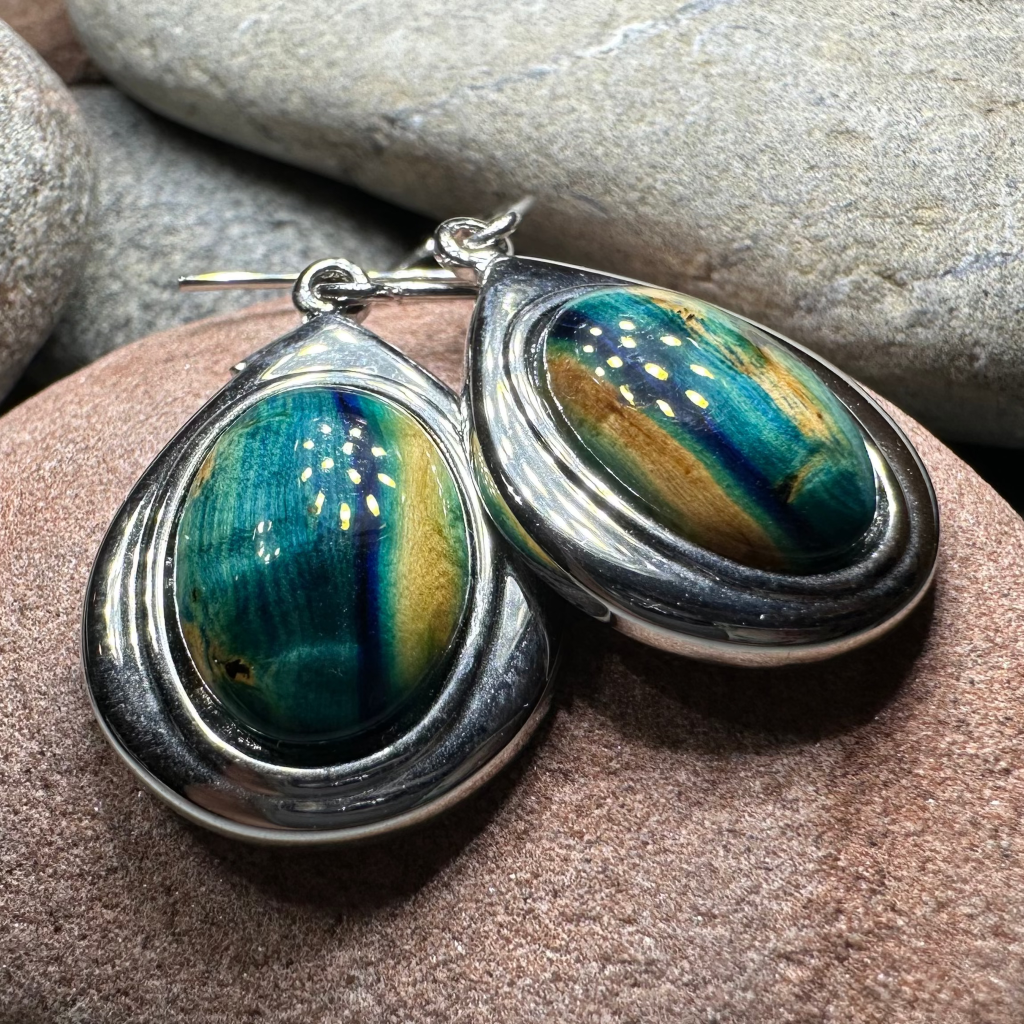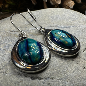 Beautiful Celtic teardrop design earrings with a lovely heather stone. Heather stone is hand created so colors will vary.