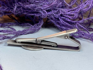 Pewter focal piece with stainless steel clasp - Tie clip measures 2 inches wide with a matte finish.