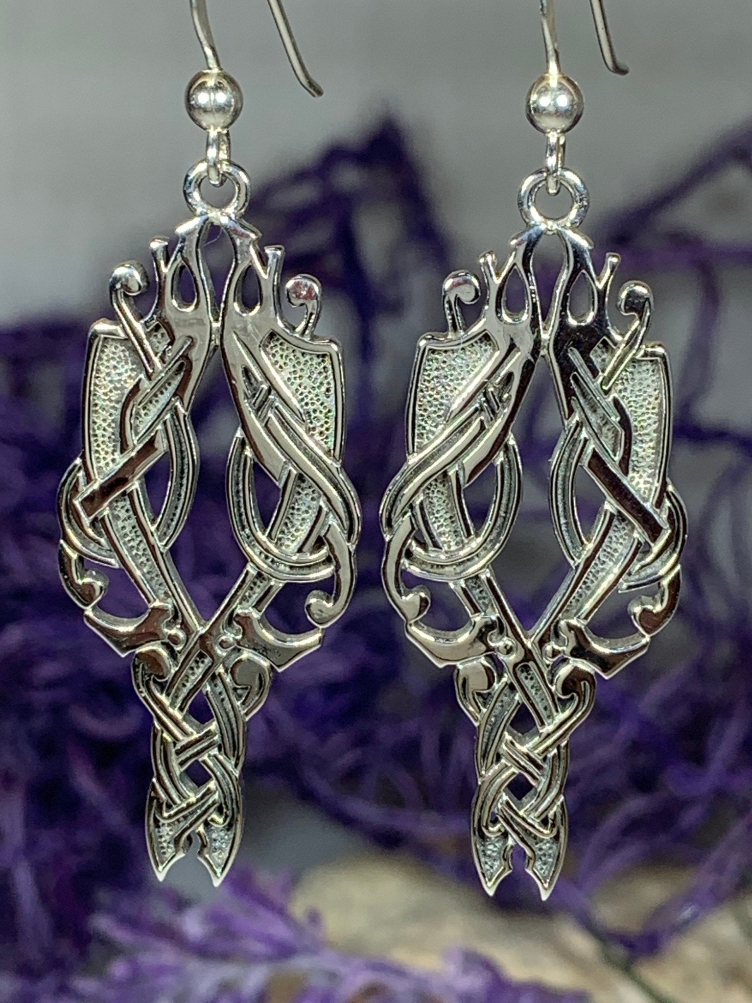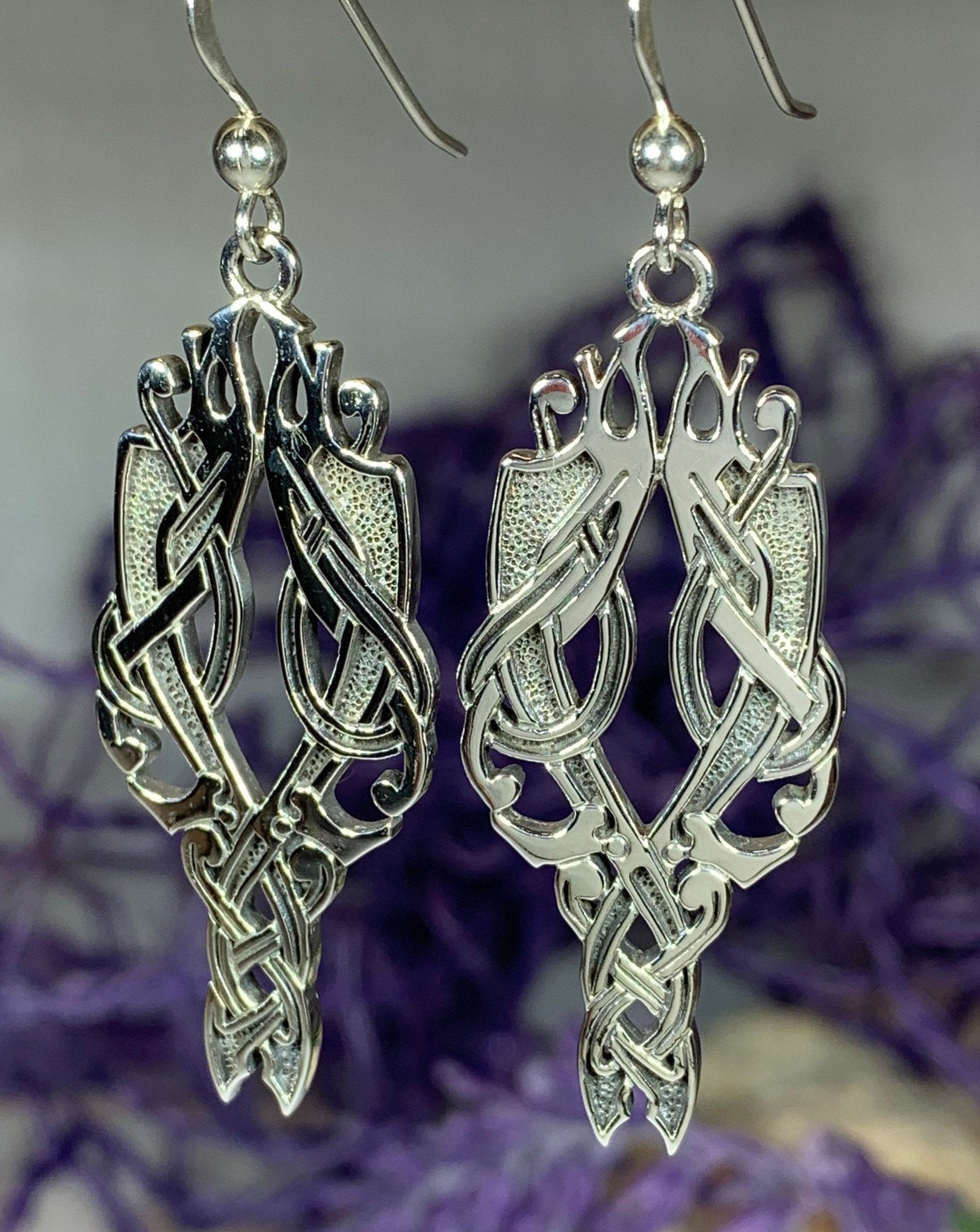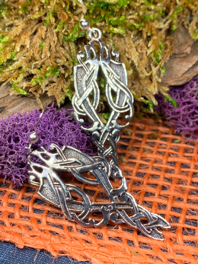 Inspired by the ancient Norse Urnes snake symbols, this sterling silver Celtic Viking earrings are elegantly designed with great detail . The Urnes snakes symbolize chaos and courage in the face of the greatest threats.