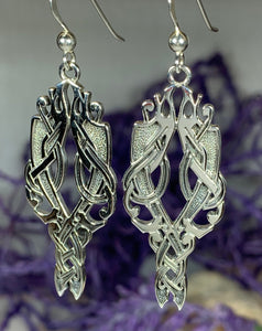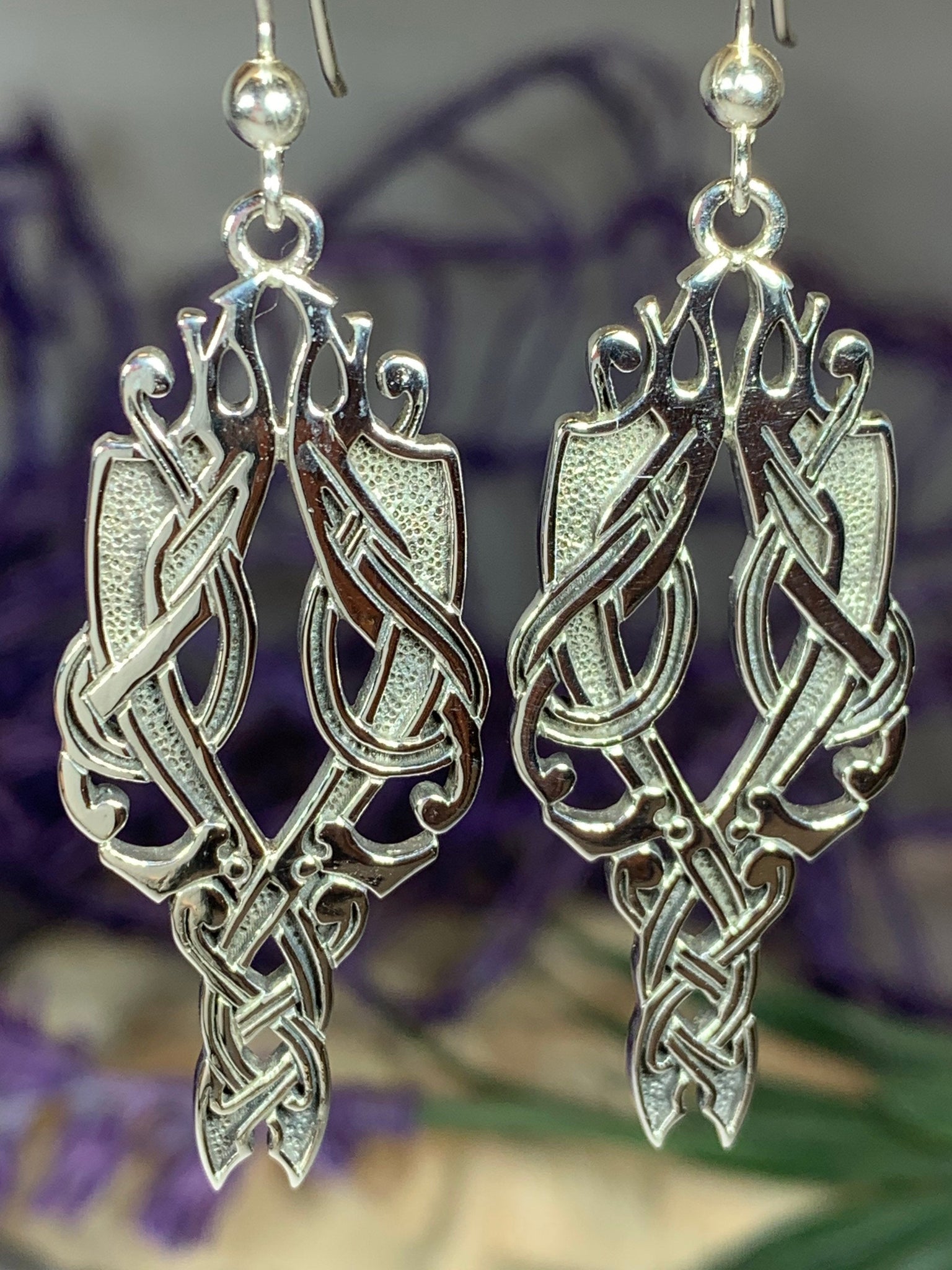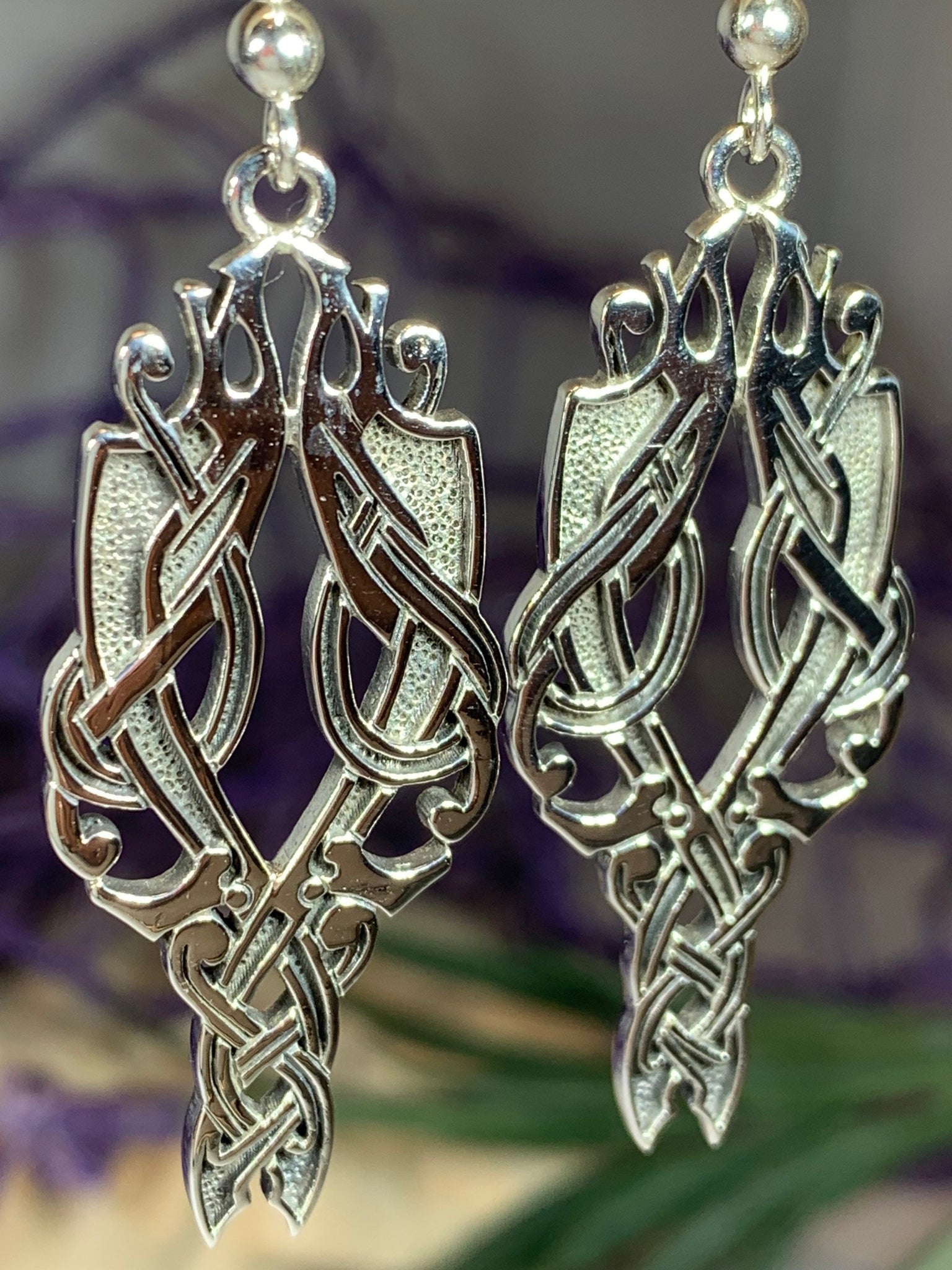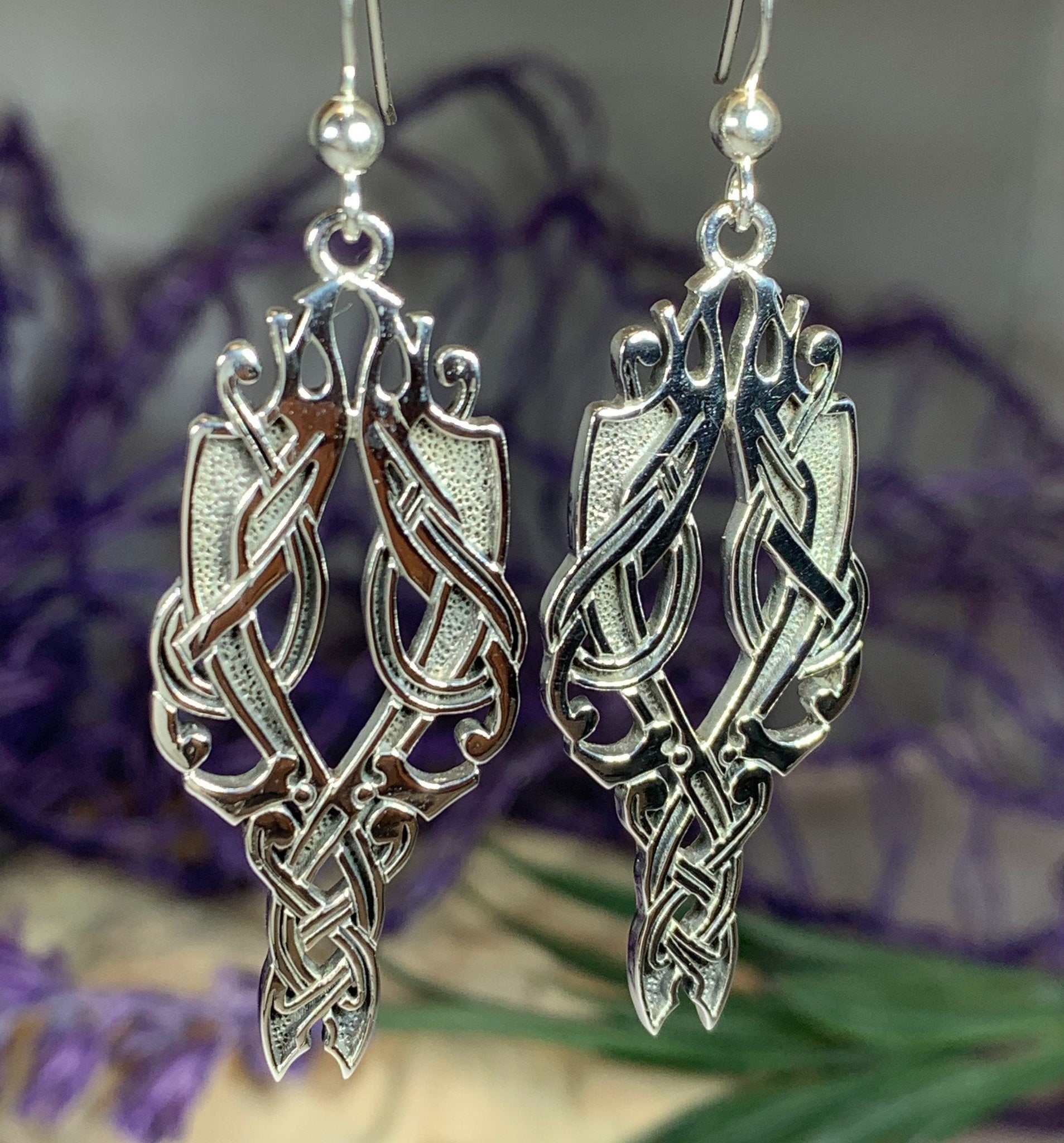 Inspired by the ancient Norse Urnes snake symbols, this sterling silver Celtic Viking earrings are elegantly designed with great detail . The Urnes snakes symbolize chaos and courage in the face of the greatest threats.