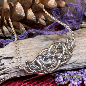 Inspired by the ancient Norse Urnes snake symbols, this sterling silver Celtic Viking necklace is elegantly designed with great detail.