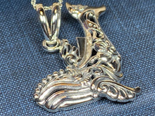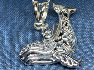 A lovely sterling silver whale 1" x 1 1/4" pendant on an 18" sterling silver chain.