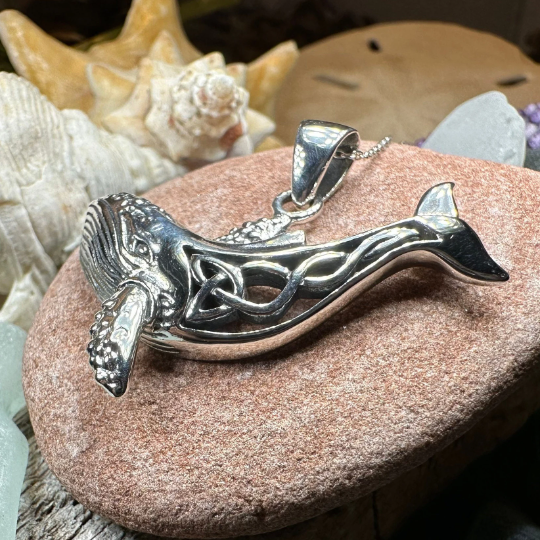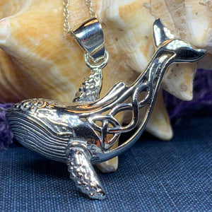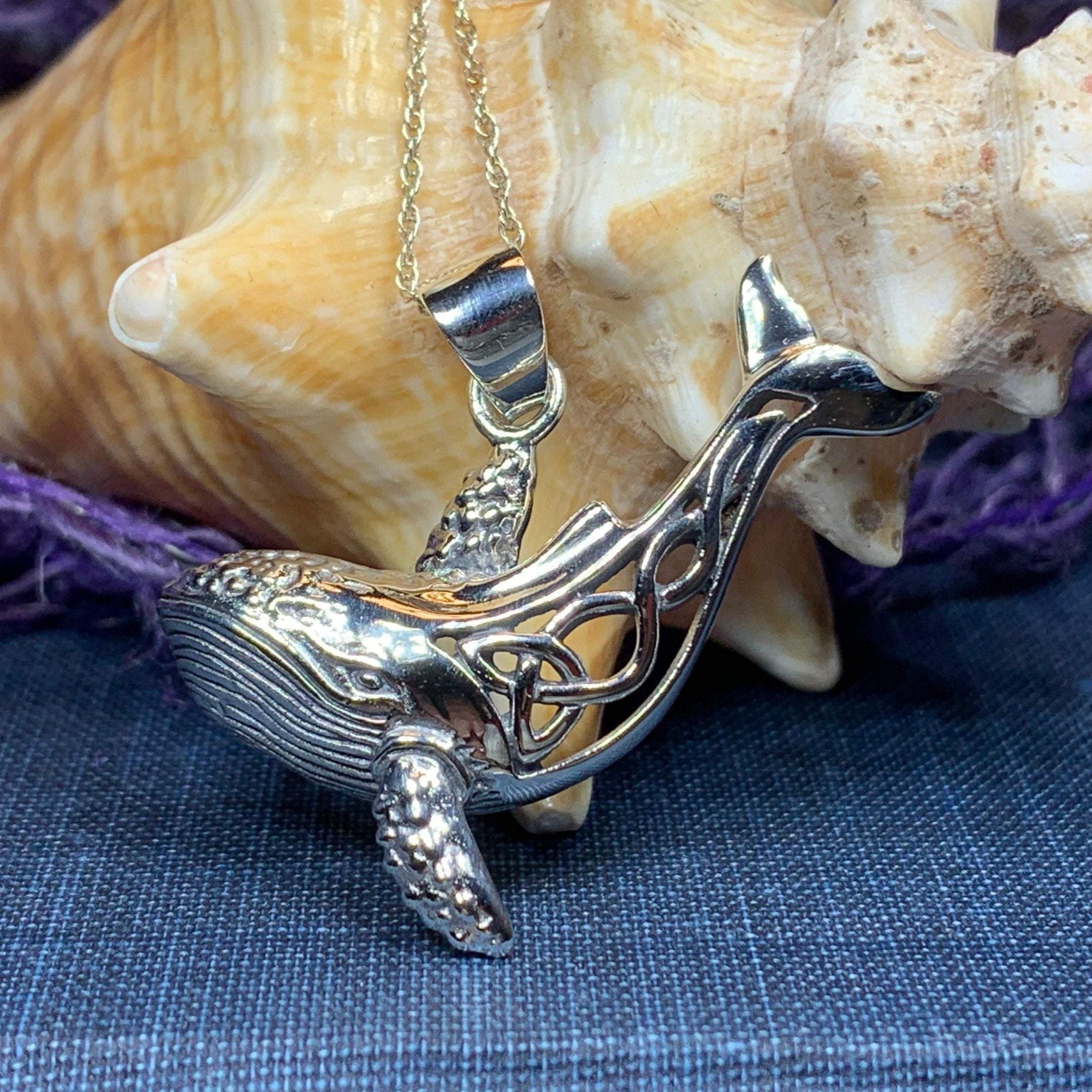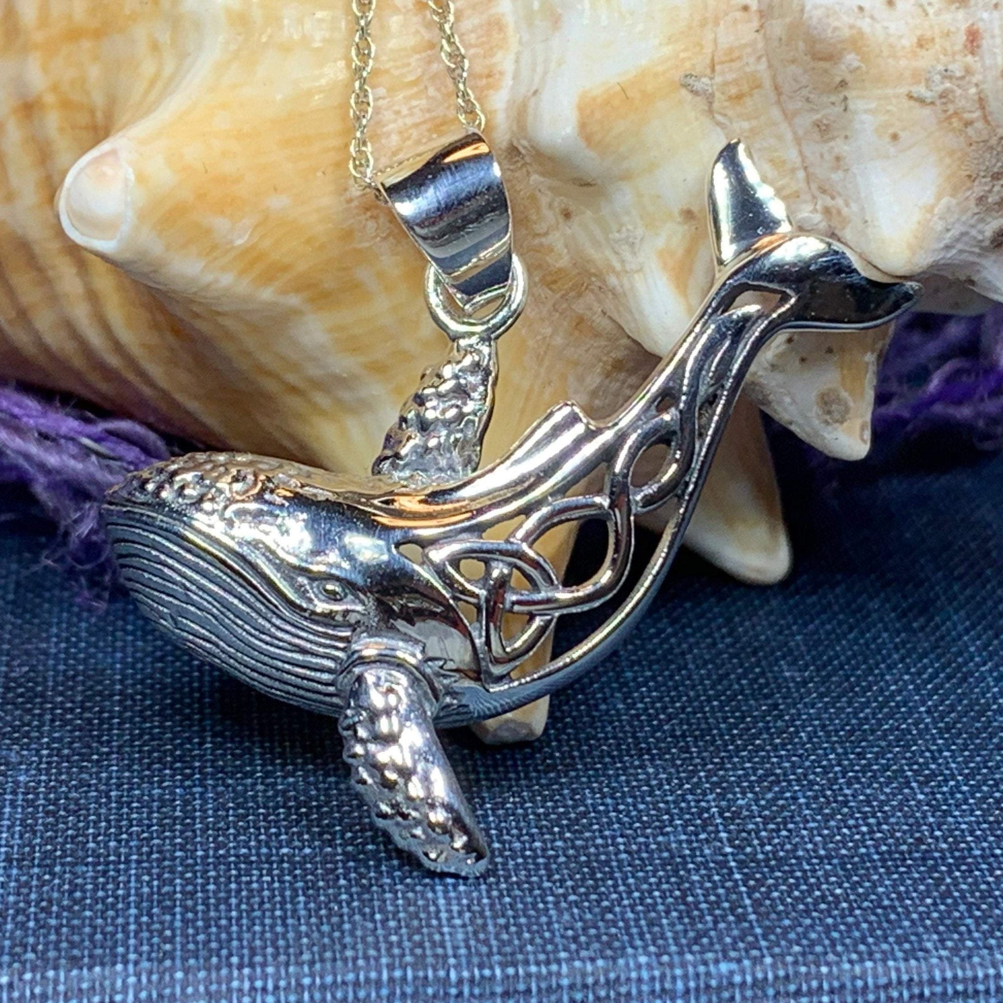 Meticulously crafted from fine sterling silver with Celtic knotwork detailing, the Celtic Whale Silver Pendant captures the power of the whale and adds some nautical charm to your day.