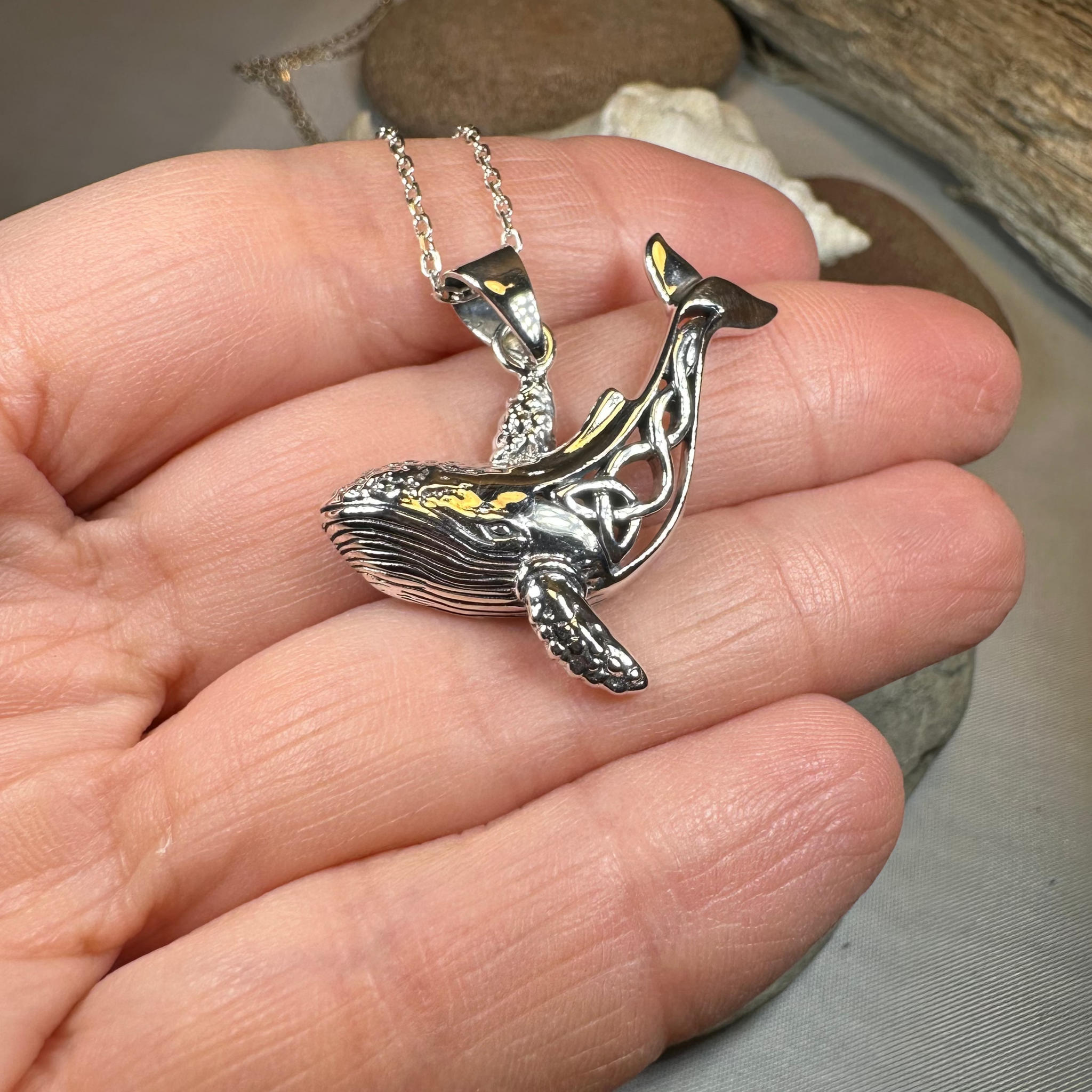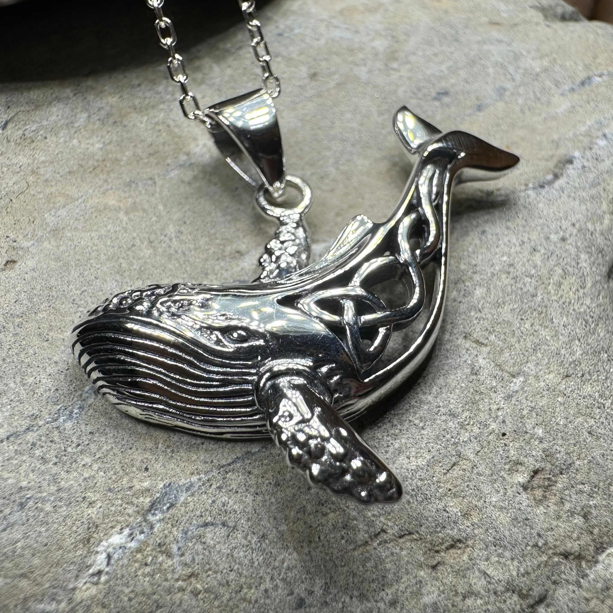 Meticulously crafted from fine sterling silver with Celtic knotwork detailing, the Celtic Whale Silver Pendant captures the power of the whale and adds some nautical charm to your day.