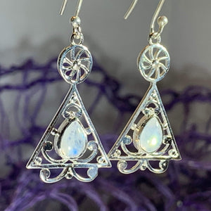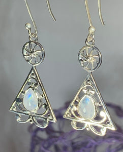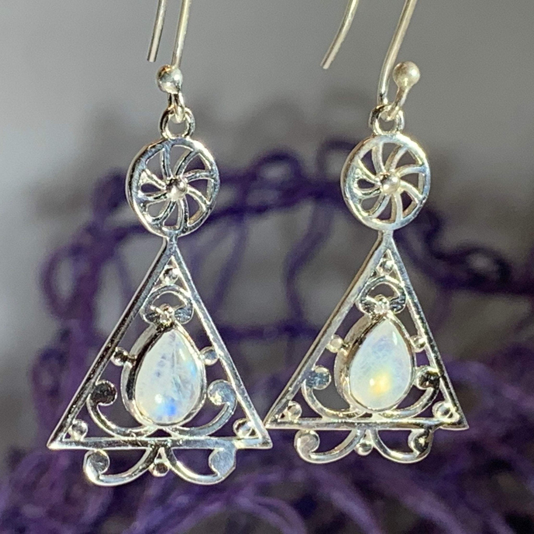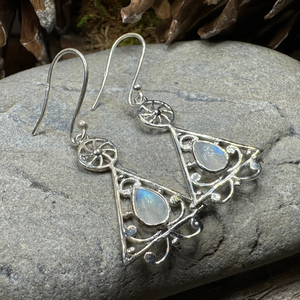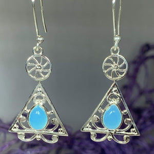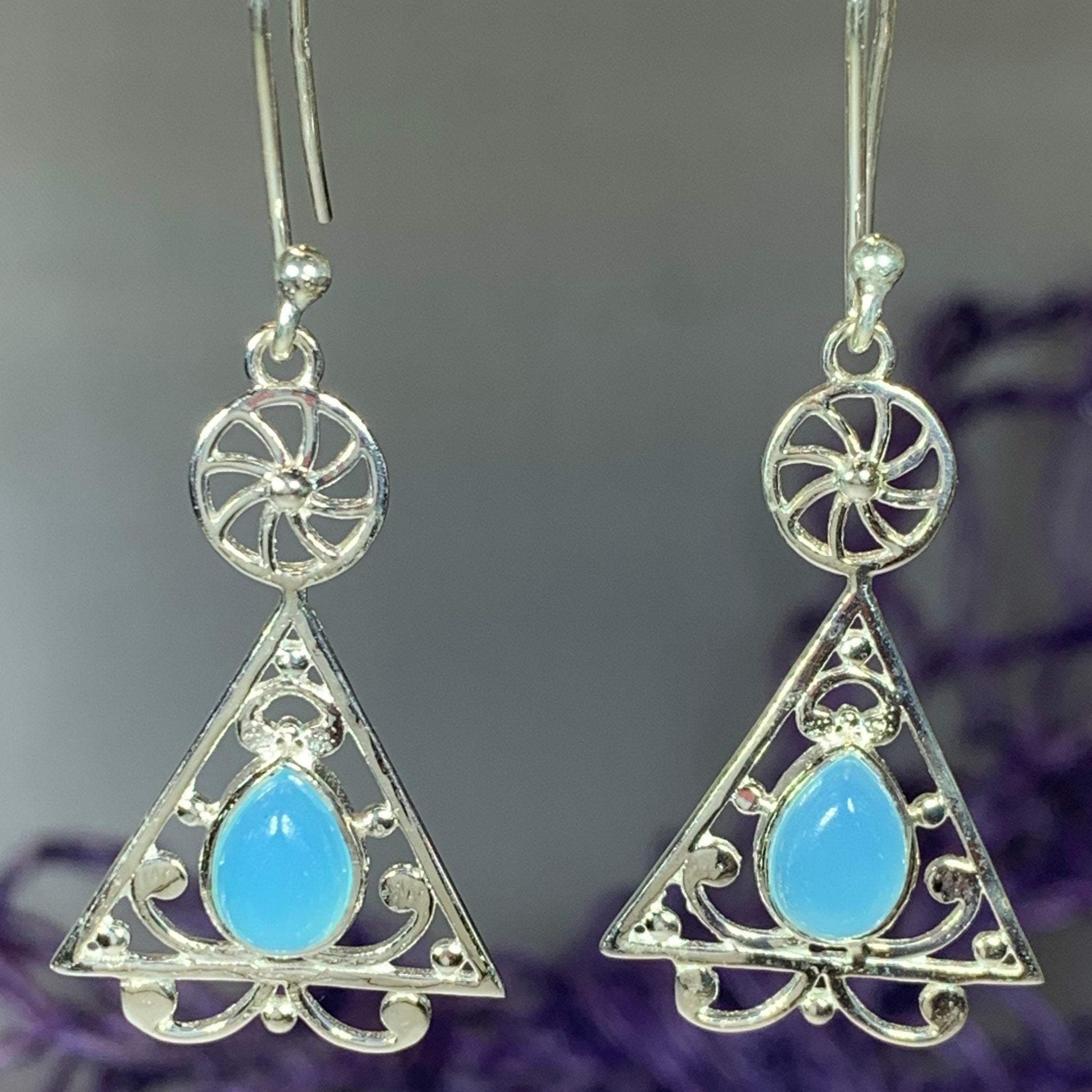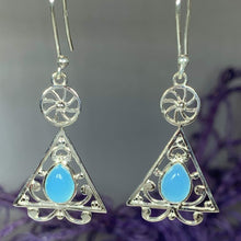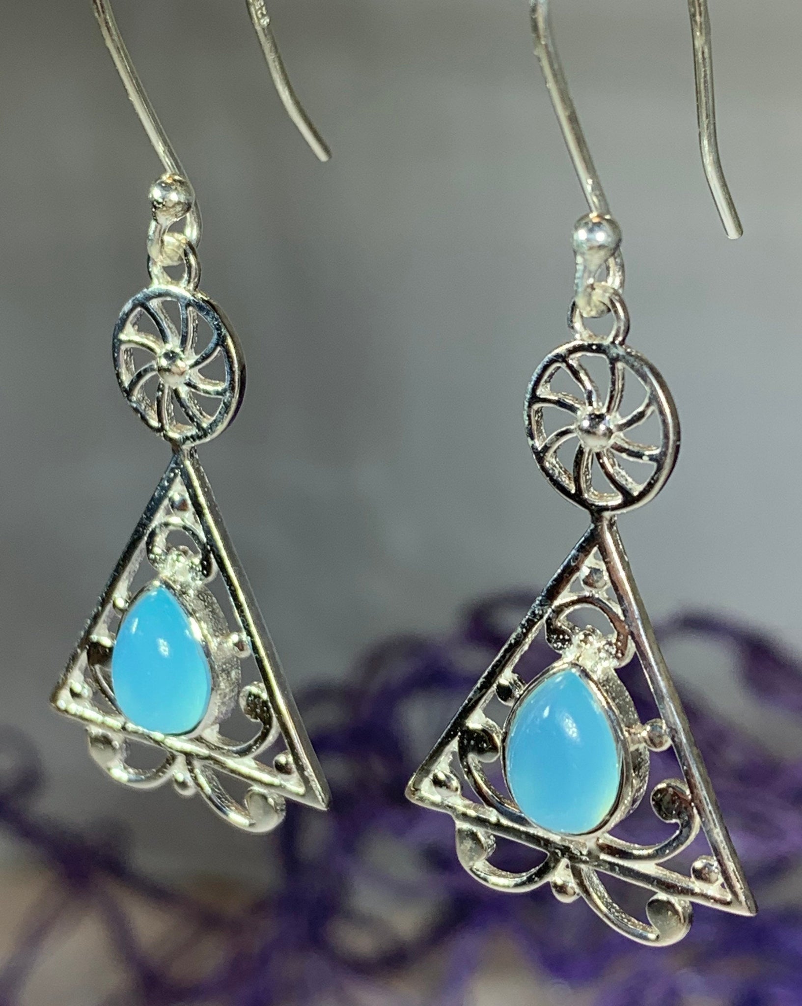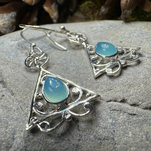 Beautiful Celtic Wheel of Life earrings- the mystical color of these stones is soft and beautiful - with lovely natural aqua chalcedony or rainbow moonstone teardrop focal stone in a beautiful Celtic wheel of life design. When the light hits the back of the earrings the stones glow with a magical light - so pretty!