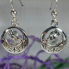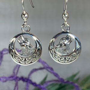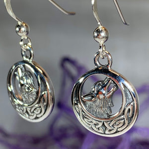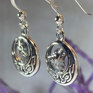 This detailed Celtic Wolf Spirit earrings will catch the eye. A beautiful design with intricate knot work with a wolf head howling proudly at the moon. Solid sterling silver. The detail of the wolf's head is incredible - you can see each detail even on his ears! - a beautiful work of art!