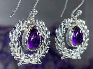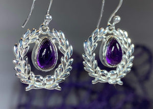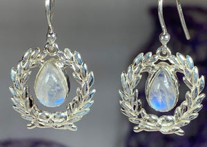 Beautiful Celtic Wreath earrings- the iridescent colors of blue, green, gold and purple in these gorgeous amethyst or rainbow moonstone stones will dazzle you!