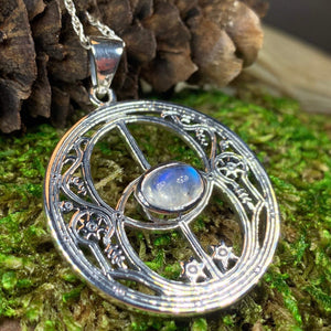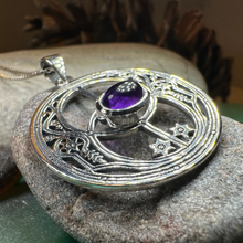 Choose from rainbow moonstone, garnet or amethyst gemstones. On an 18" chain.
