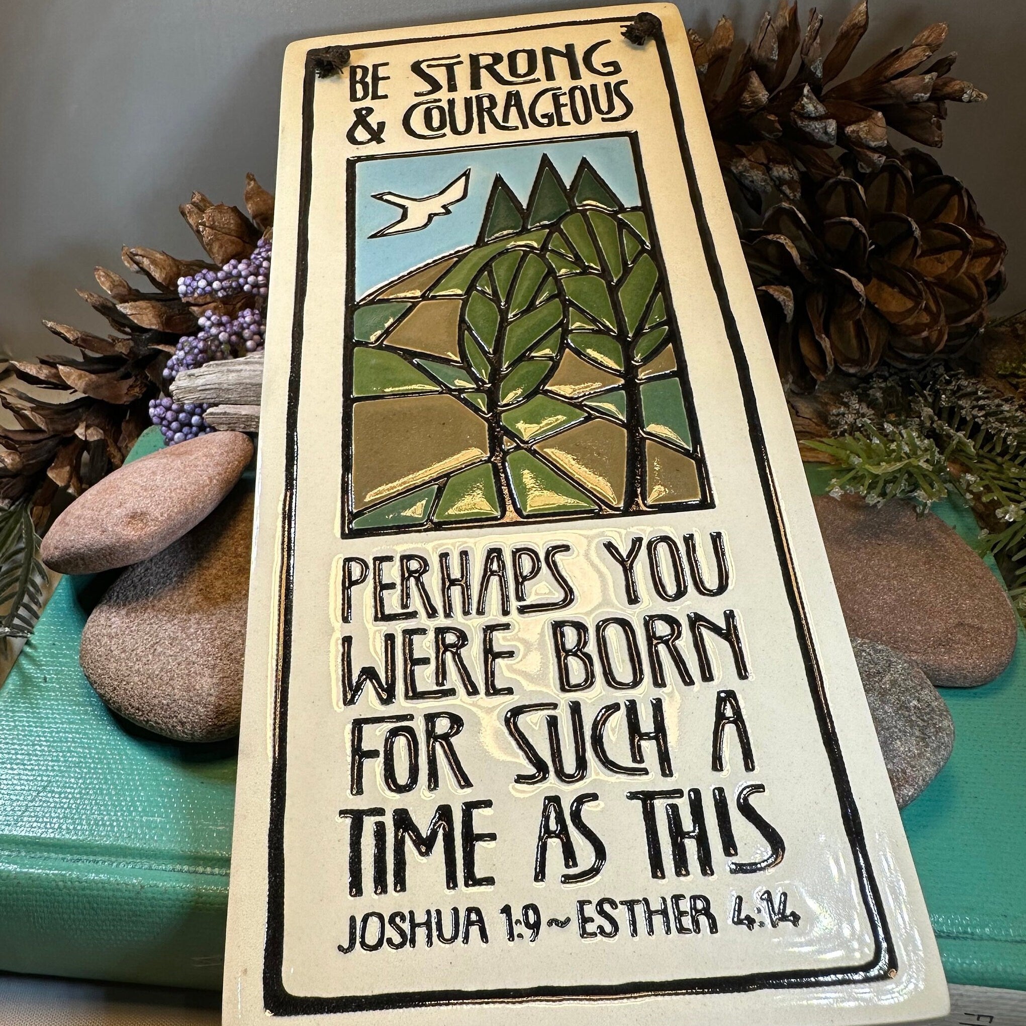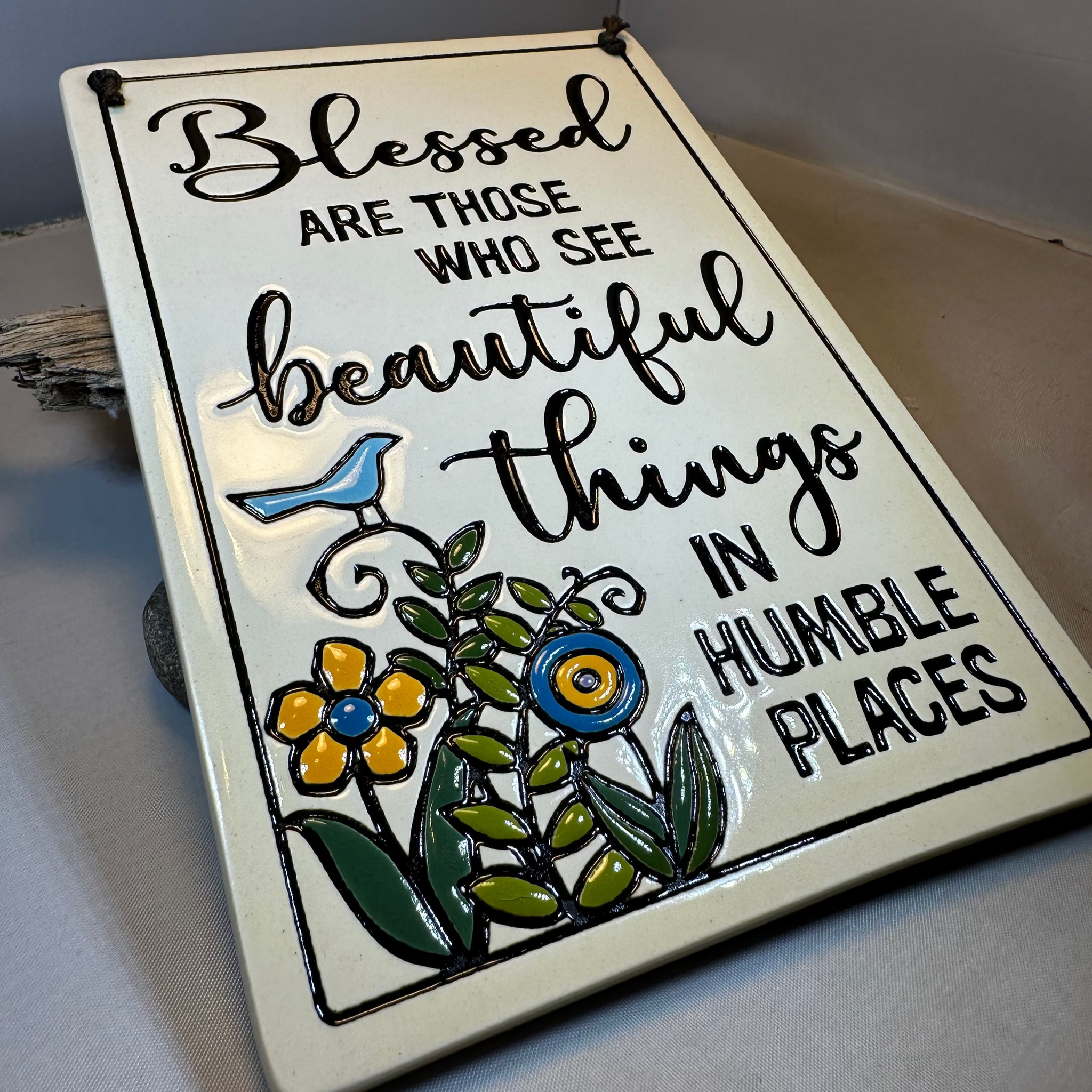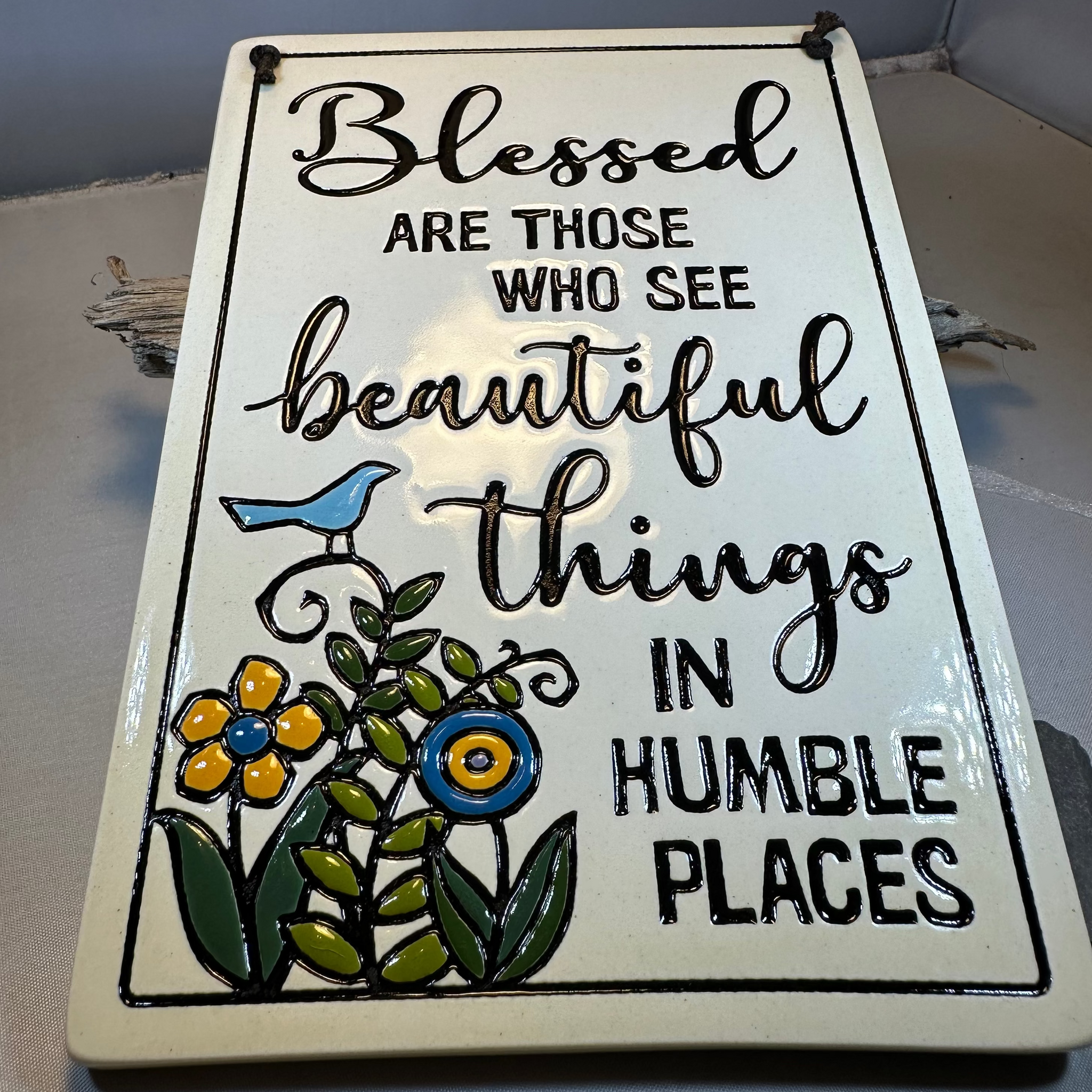 The design of this piece is unique because the lettering is etched into the clay rather than just applied to the surface. This gives the piece a dimensional quality that can be appreciated with the hand and the eye! All colors are hand glazed and each piece is kiln fired twice to nearly 2000 degrees. The result is a fade proof work of art that will last a lifetime indoors or outdoors.
