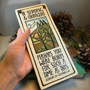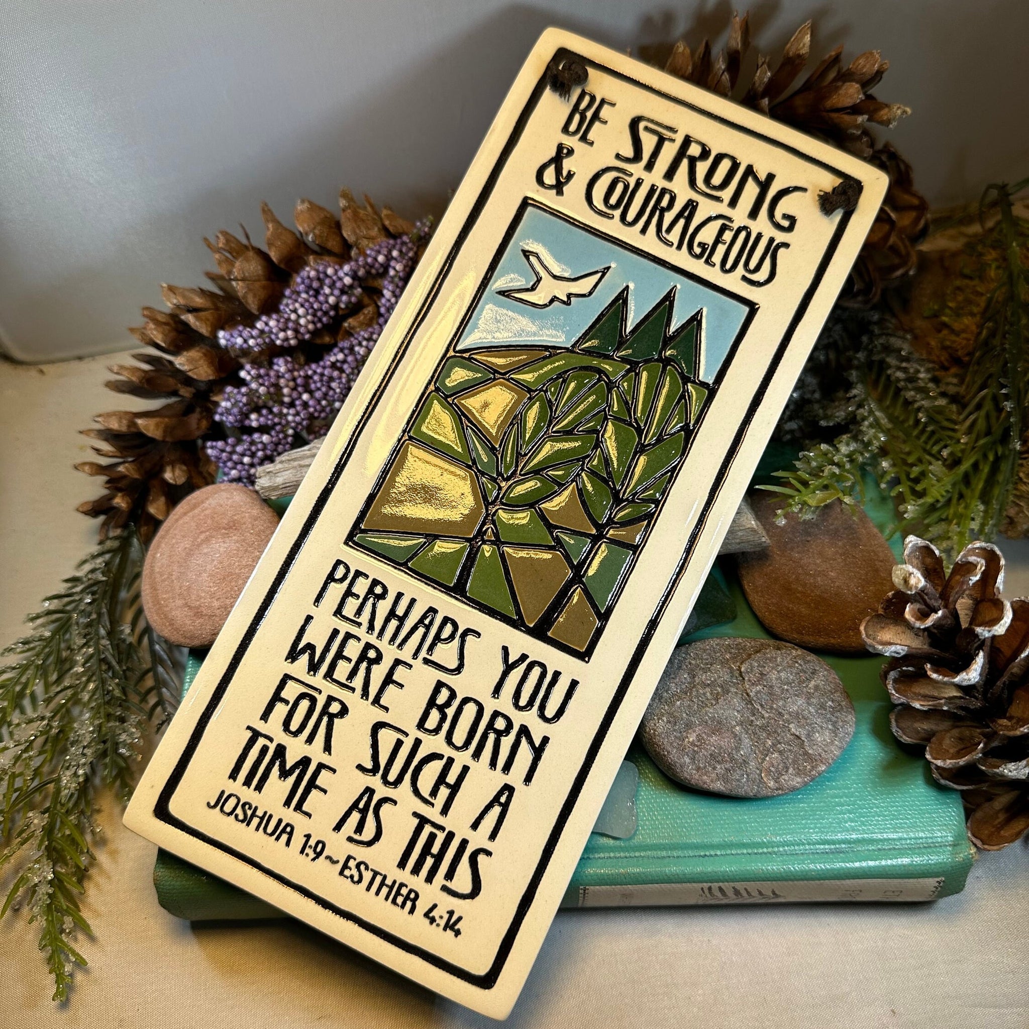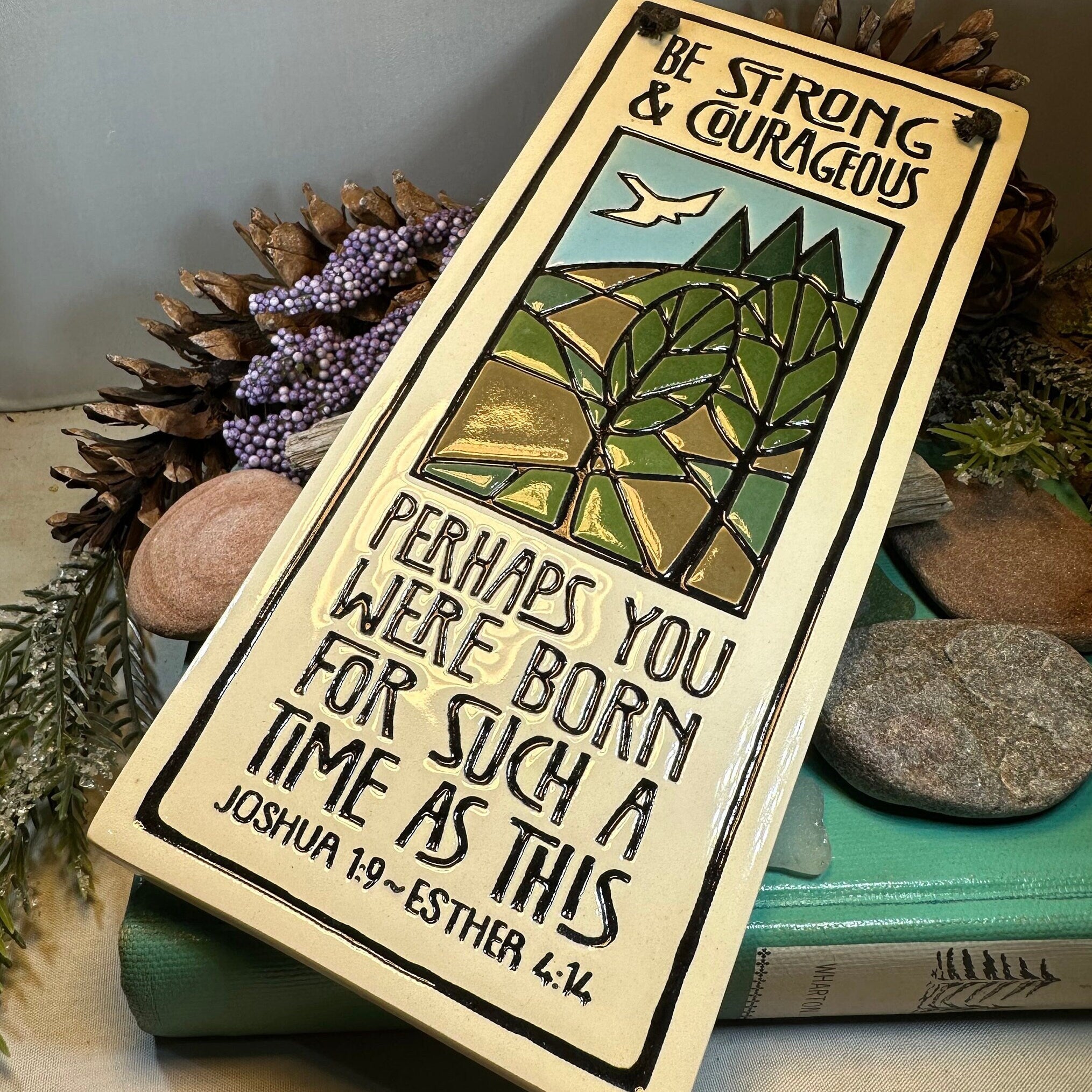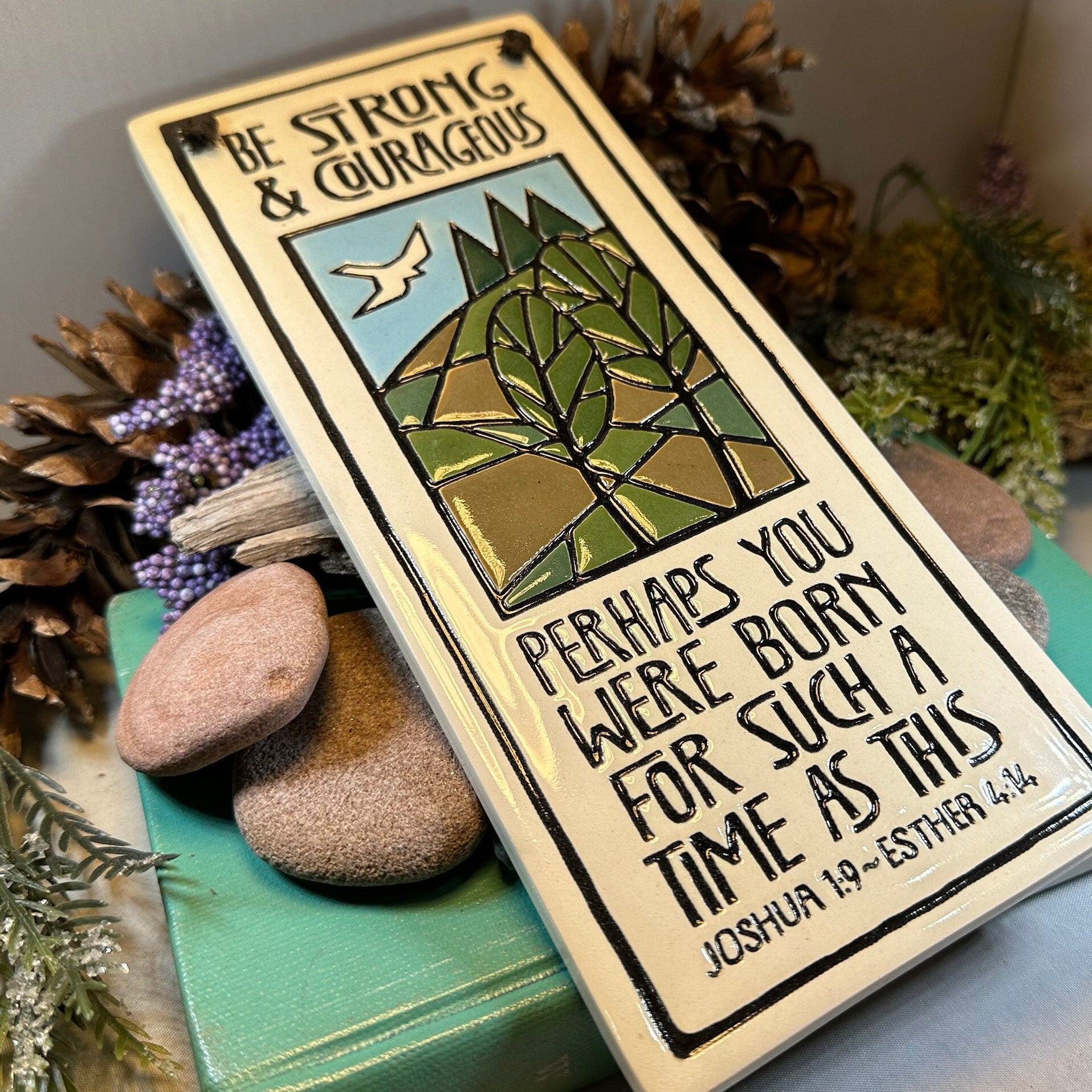 The design of this piece is unique because the lettering is etched into the clay rather than just applied to the surface. This gives the piece a dimensional quality that can be appreciated with the hand and the eye! All colors are hand glazed and each piece is kiln fired twice to nearly 2000 degrees. The result is a fade proof work of art that will last a lifetime indoors or outdoors.