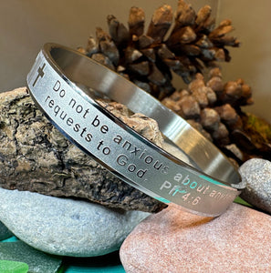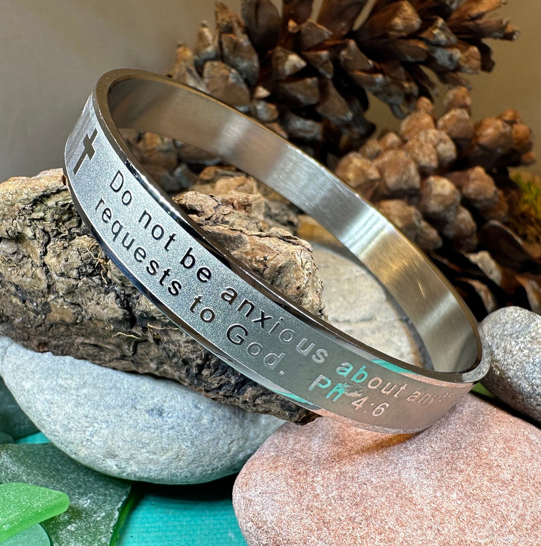 Polished Stainless Steel with satin finish Bible Verse Prayer Bracelet.