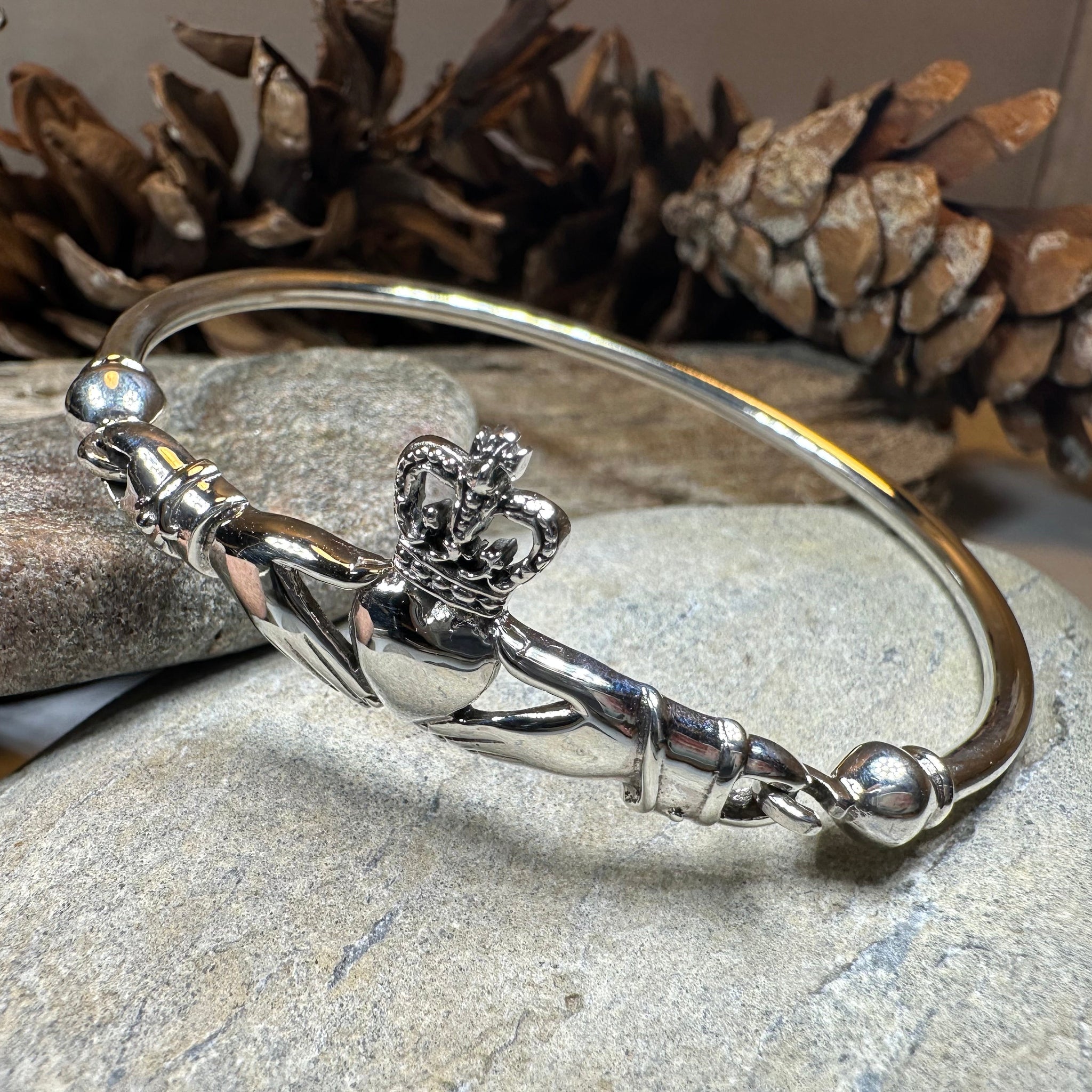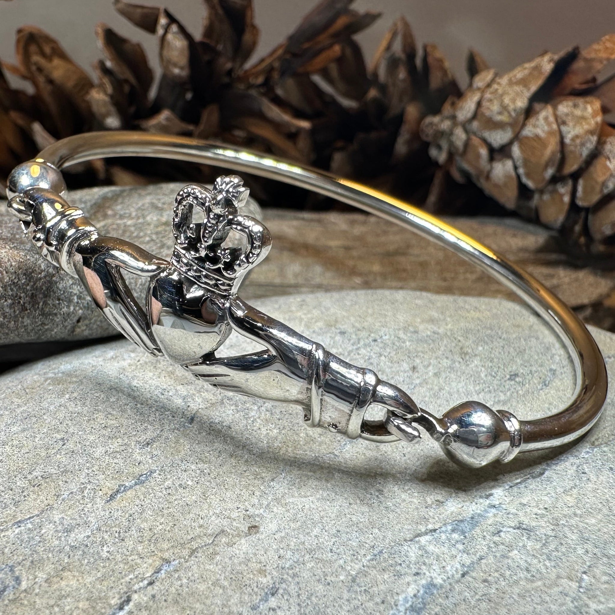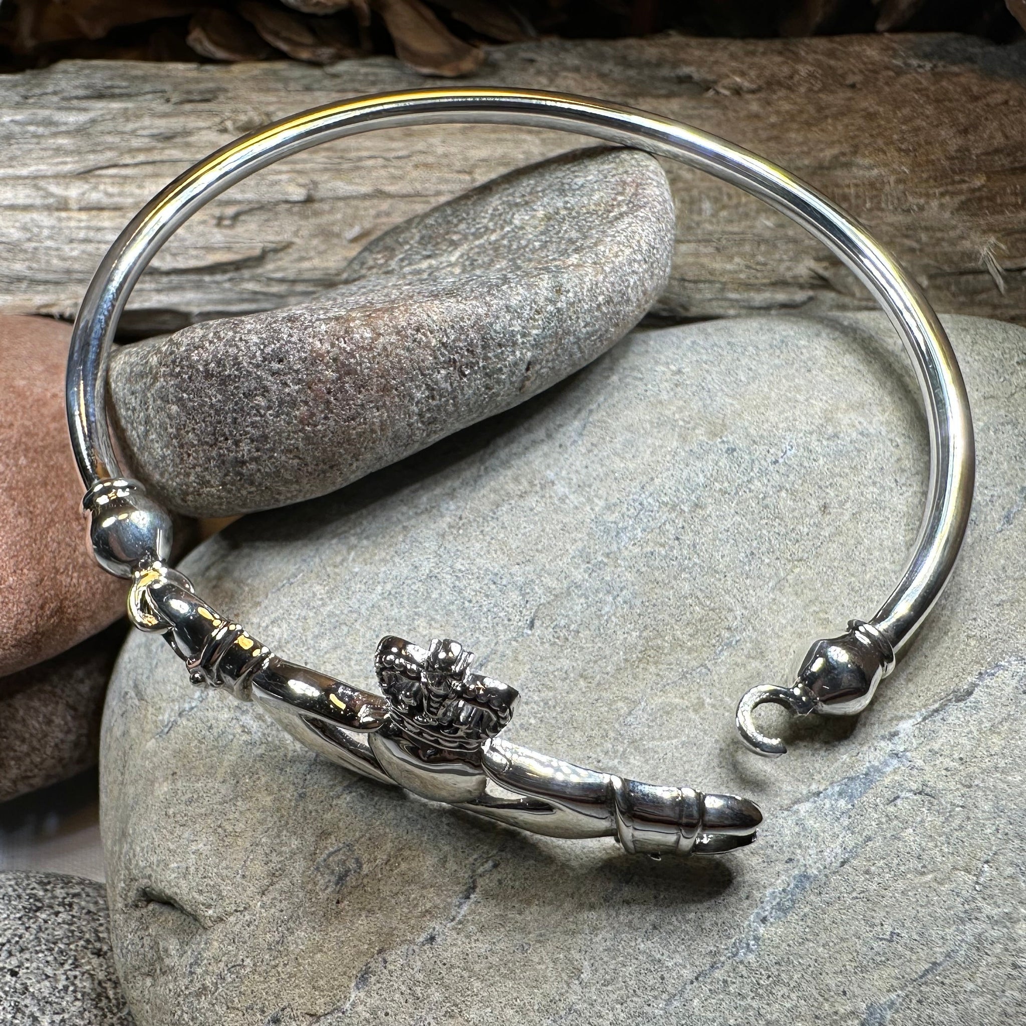 Solid Sterling Silver Claddagh Bangle Bracelet