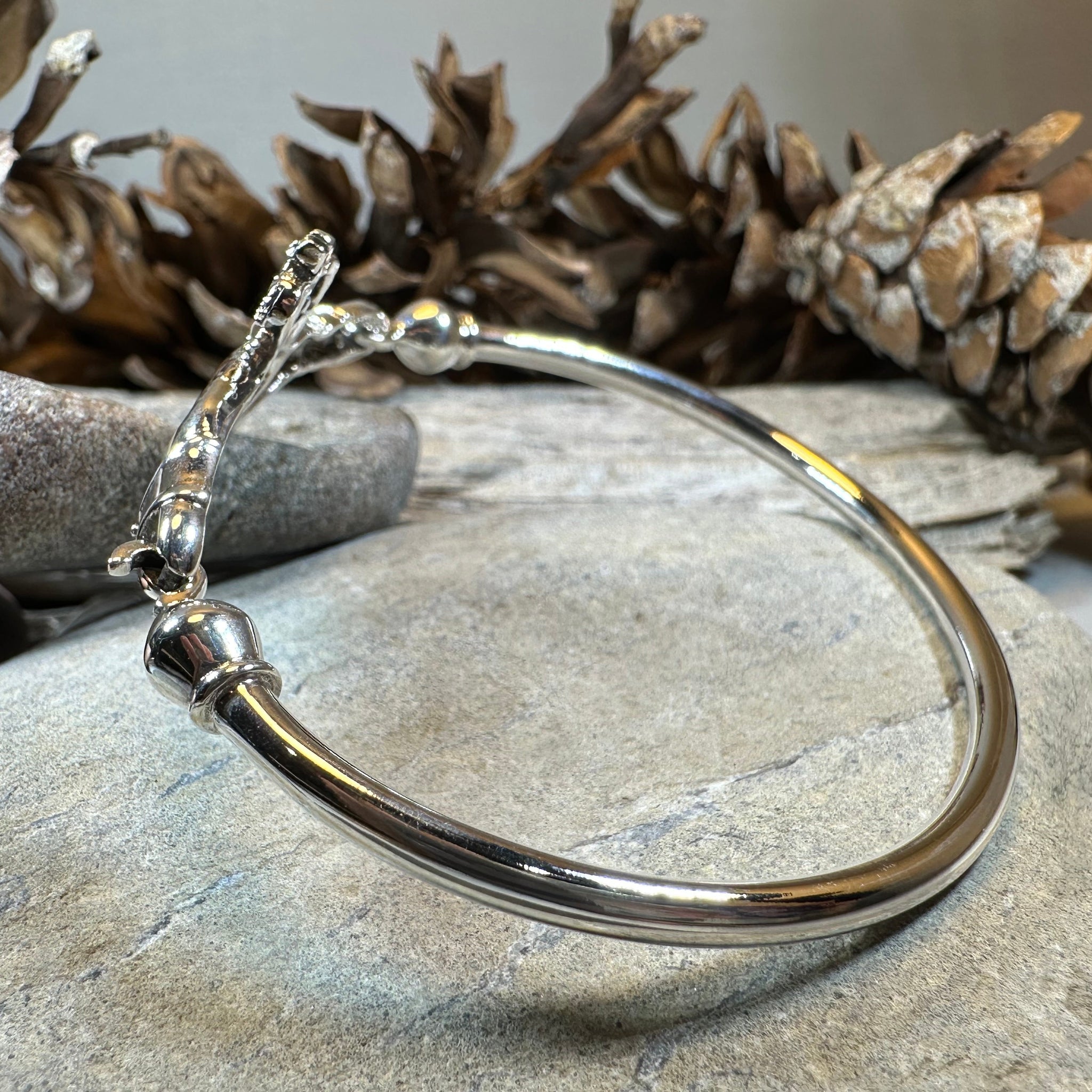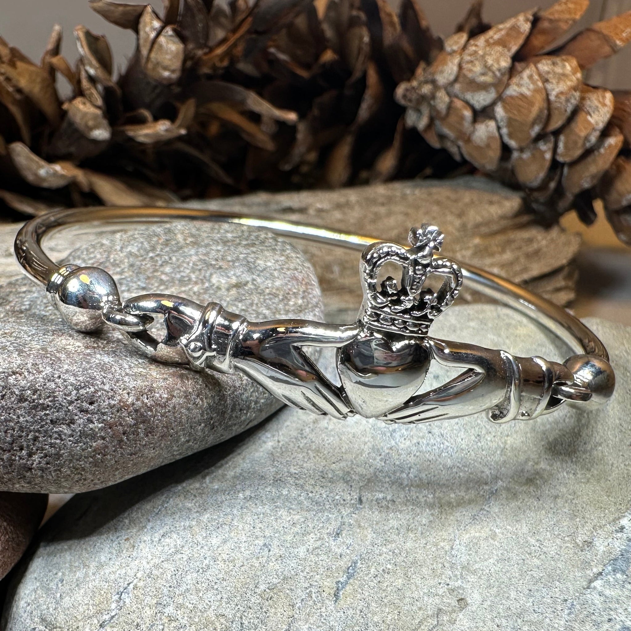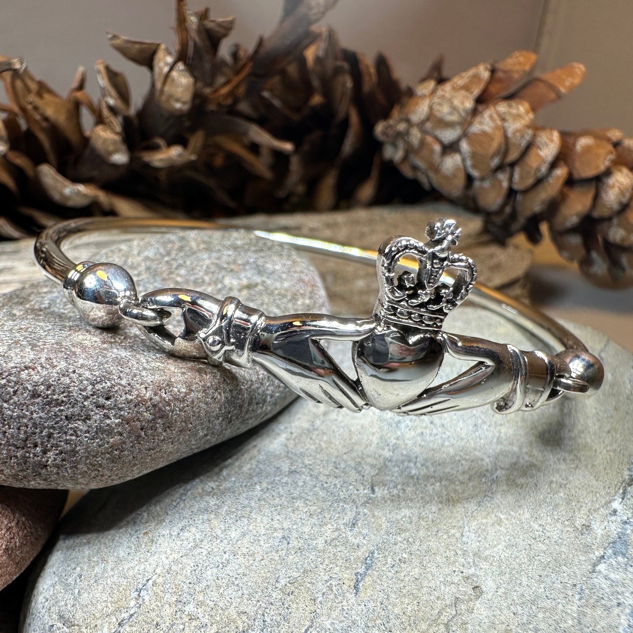 Solid Sterling Silver Claddagh Bangle Bracelet
