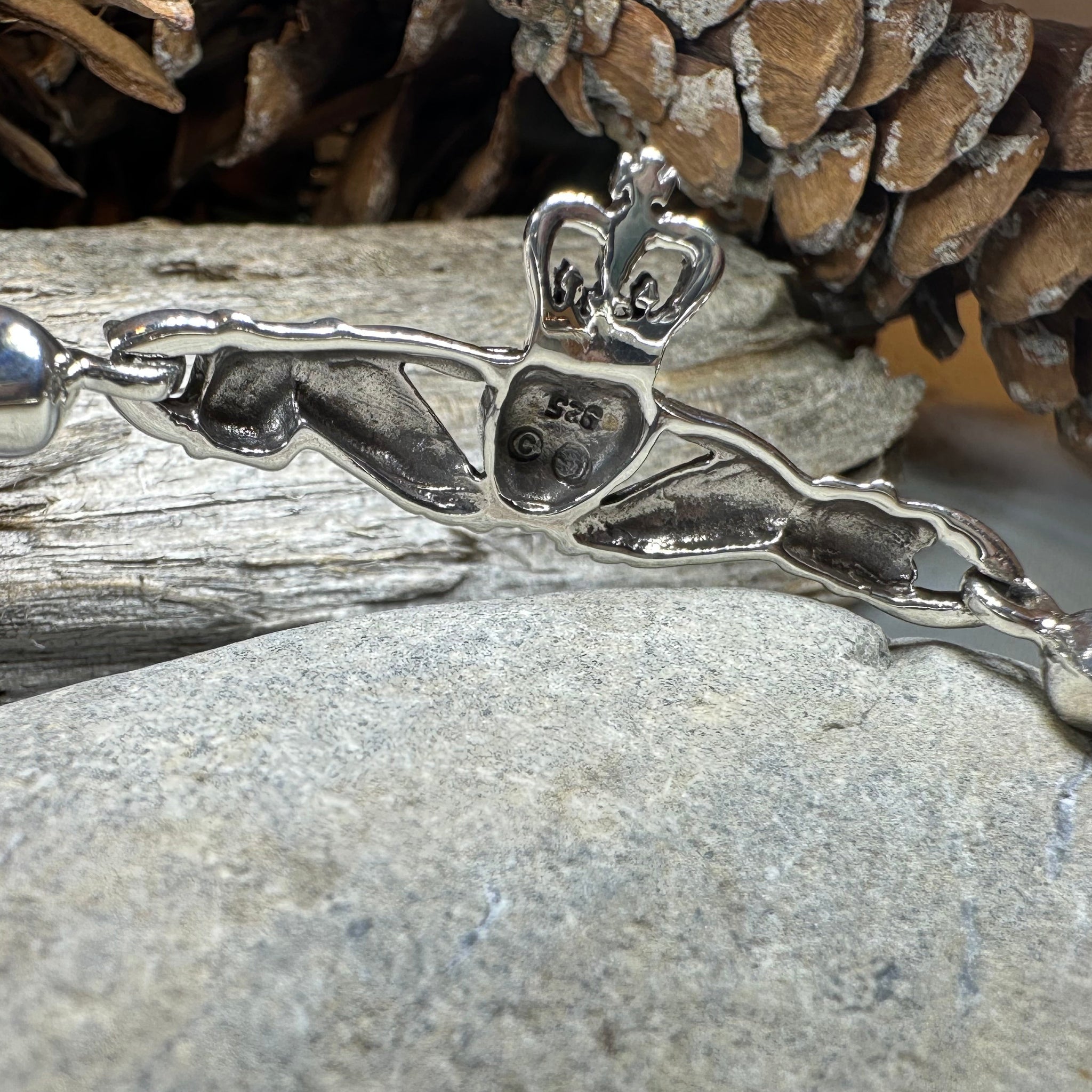 Stunning! Our highly polished solid sterling silver Claddagh Bangle Bracelet features the 17th century Claddagh design, embraced on both sides by smooth, highly polished sterling silver.