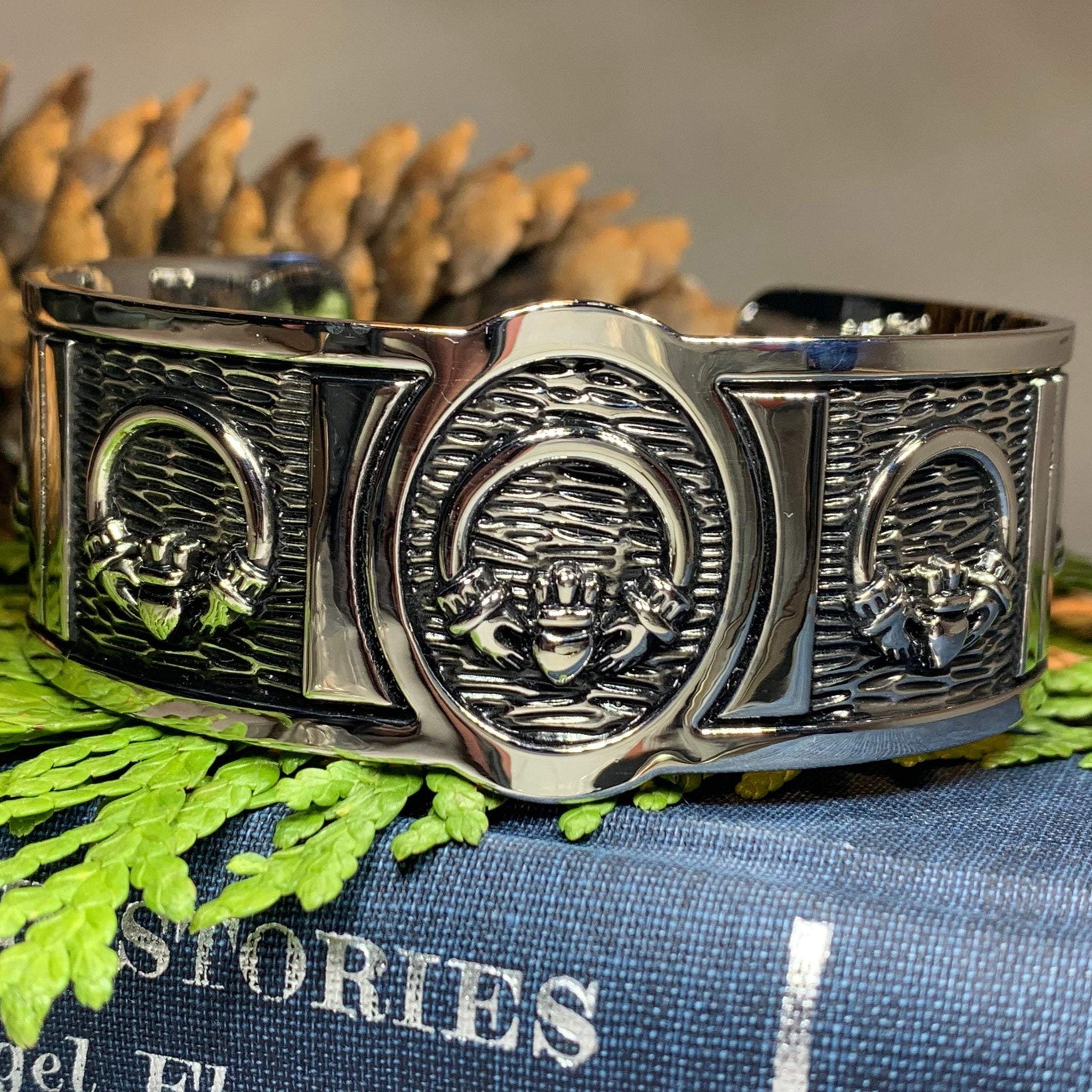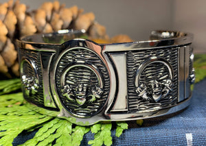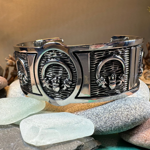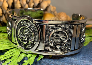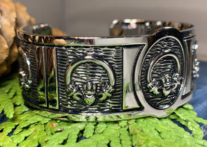 Made of heavy, solid pewter that will never tarnish and designed to last a lifetime. A beautiful gift! Bracelet is in the cuff style with an open back and can be adjusted for almost any wrist size. A rich, traditional Celtic look at a very amazing price!