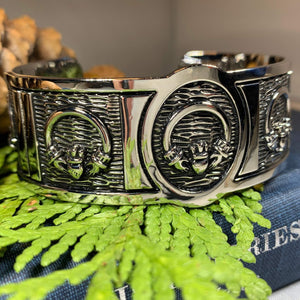 Stunning! Our highly polished Pewter Claddagh Bangle Bracelet features an ancient Celtic design that goes back hundreds of years.