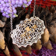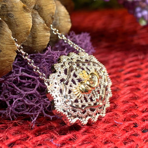 The history of lace making in Ireland is a long and proud one. An old Irish custom would be to gift a beautifully detailed piece of handmade lace to a new bride or new mother. This beautiful necklace captures the lovely details of traditional Irish lace in solid sterling silver.