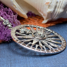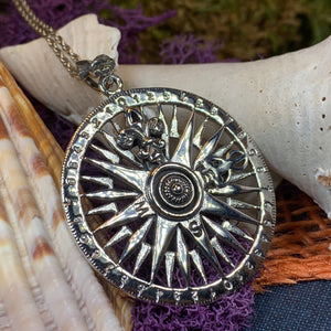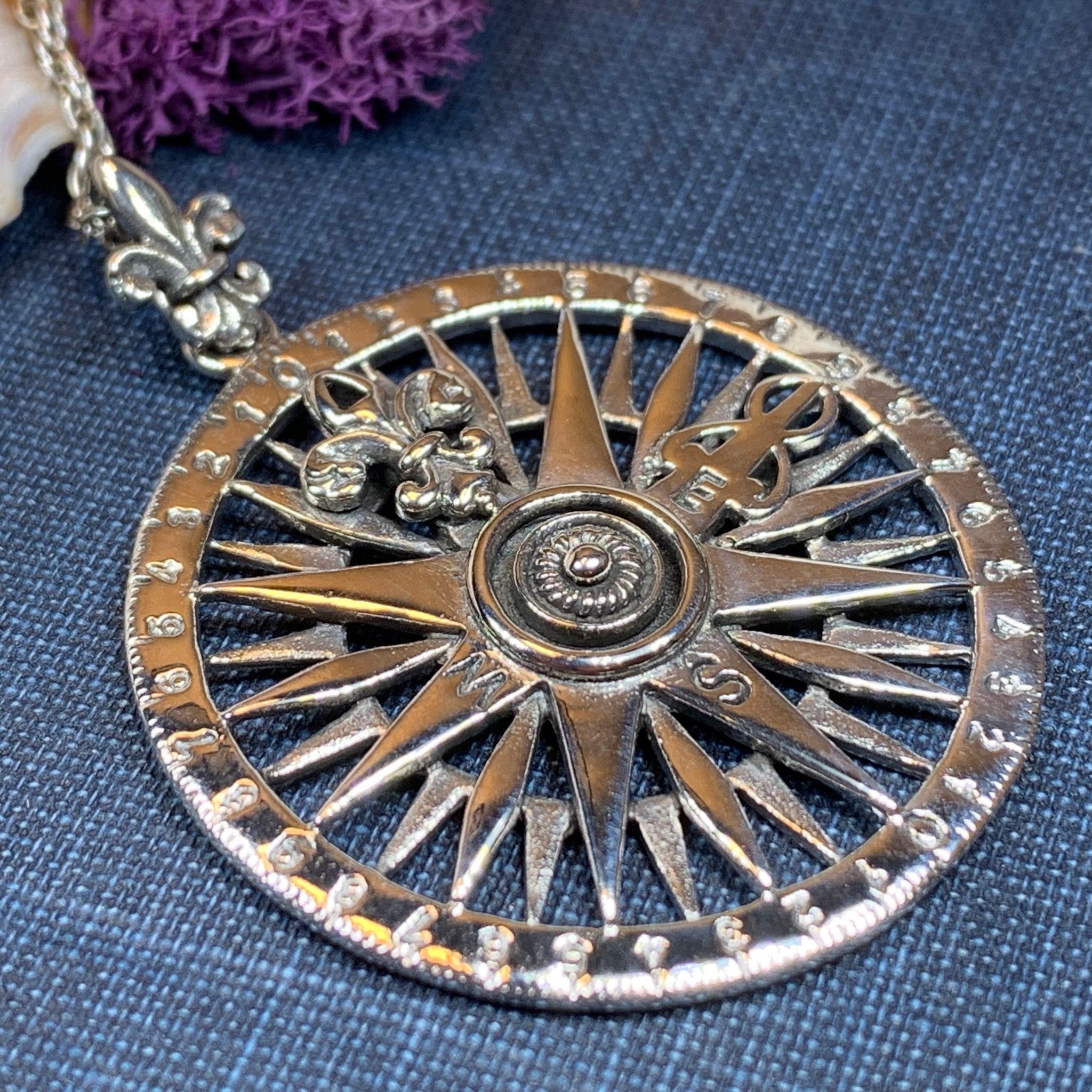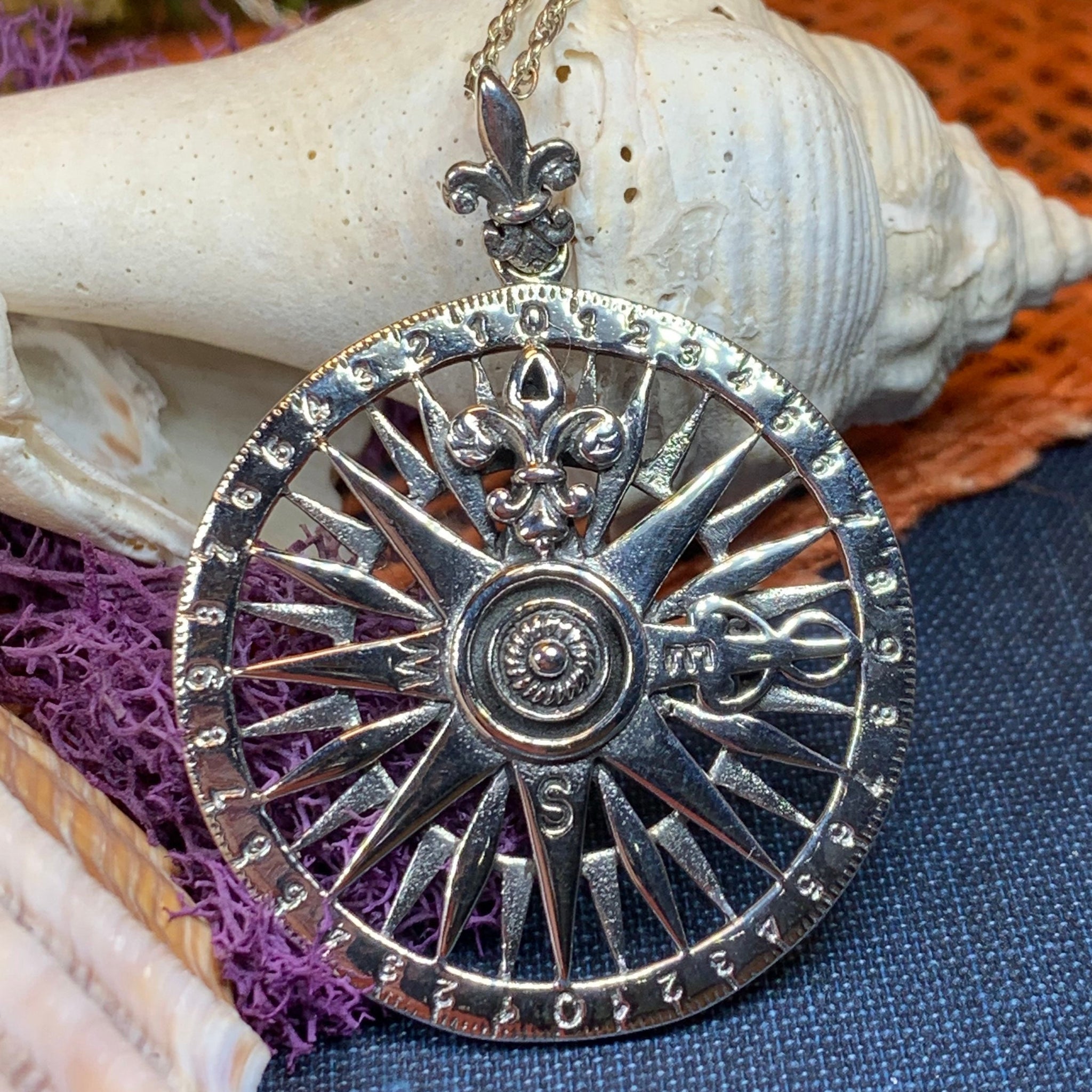 Solid Sterling Silver - Celtic Fleur de Lis Solid Sterling Silver Compass Pendant on an 18" silver chain.