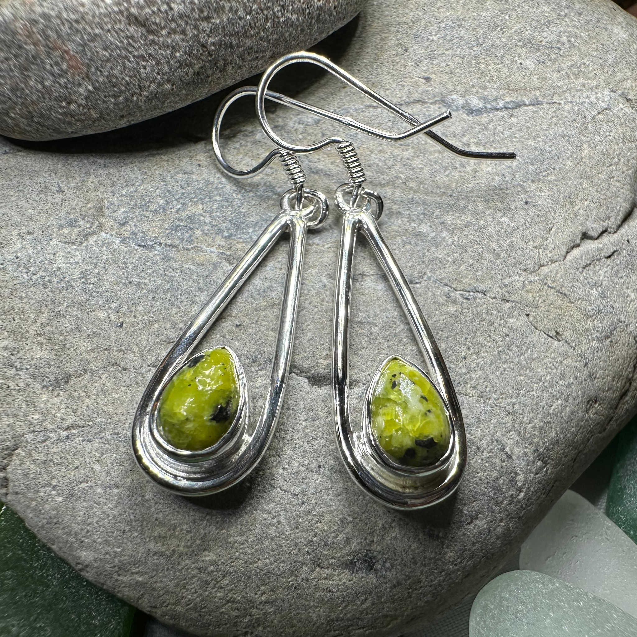 This marble, mined in Ireland, is a natural stone with a smooth polished finish. Color may vary from bright to darker green. This makes each jewelry piece a unique work of art and a special piece of Ireland!