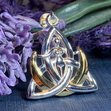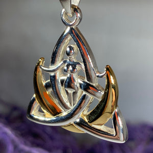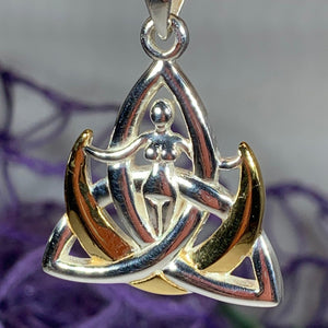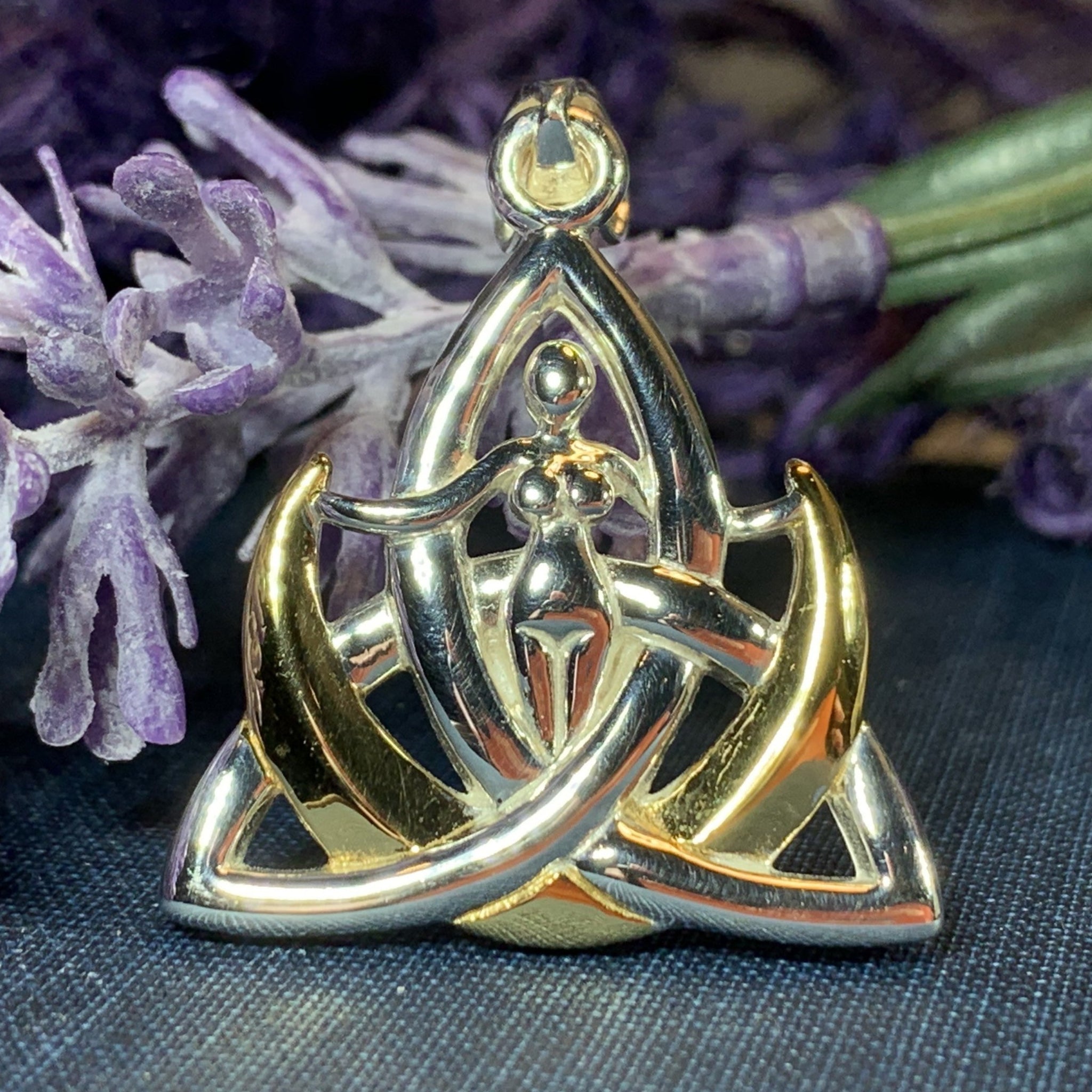 Meticulously crafted from fine sterling silver with beautiful detailing, the Triple Moon Goddess Pendant showcases the beauty of Celtic tradition, modern design, and fine craftsmanship.