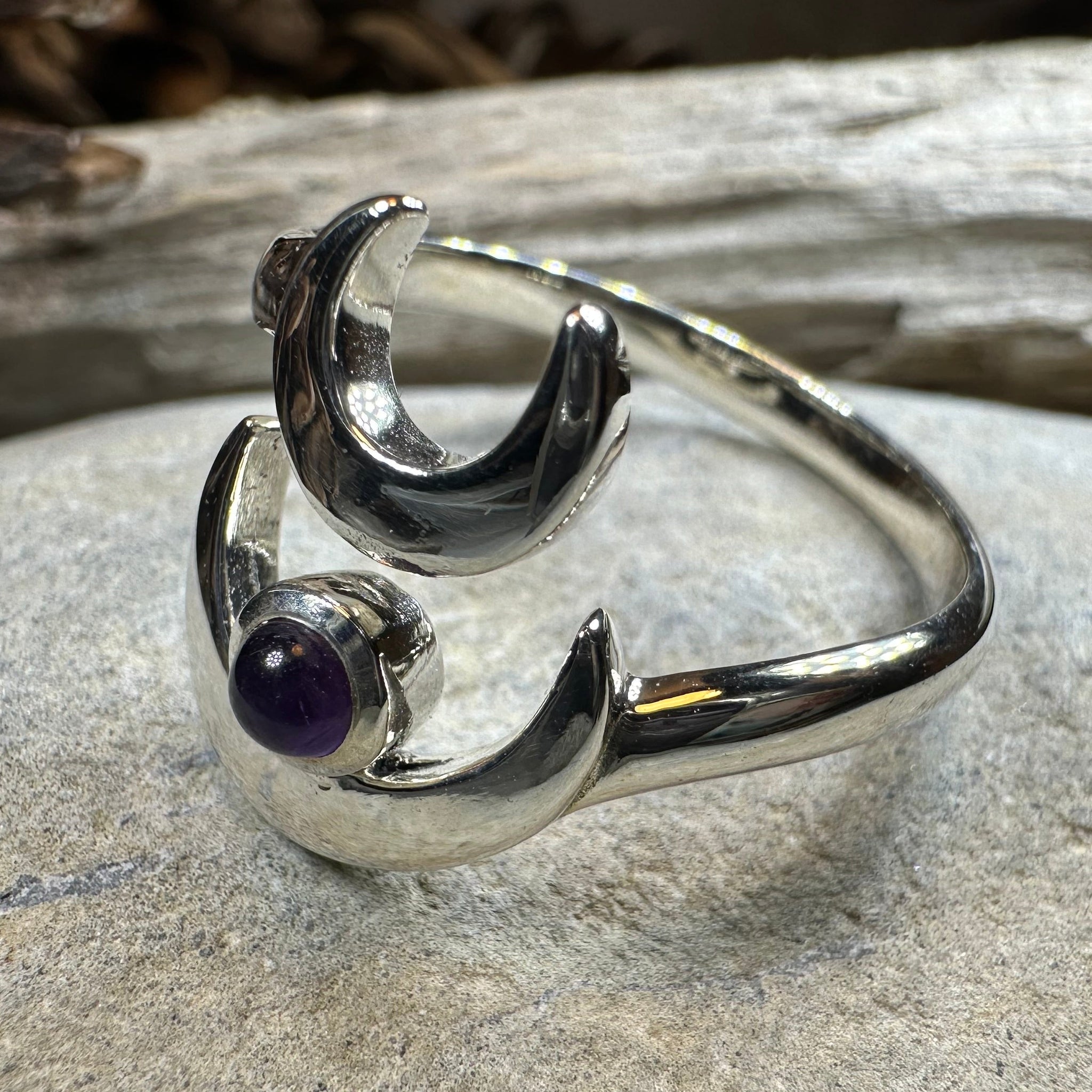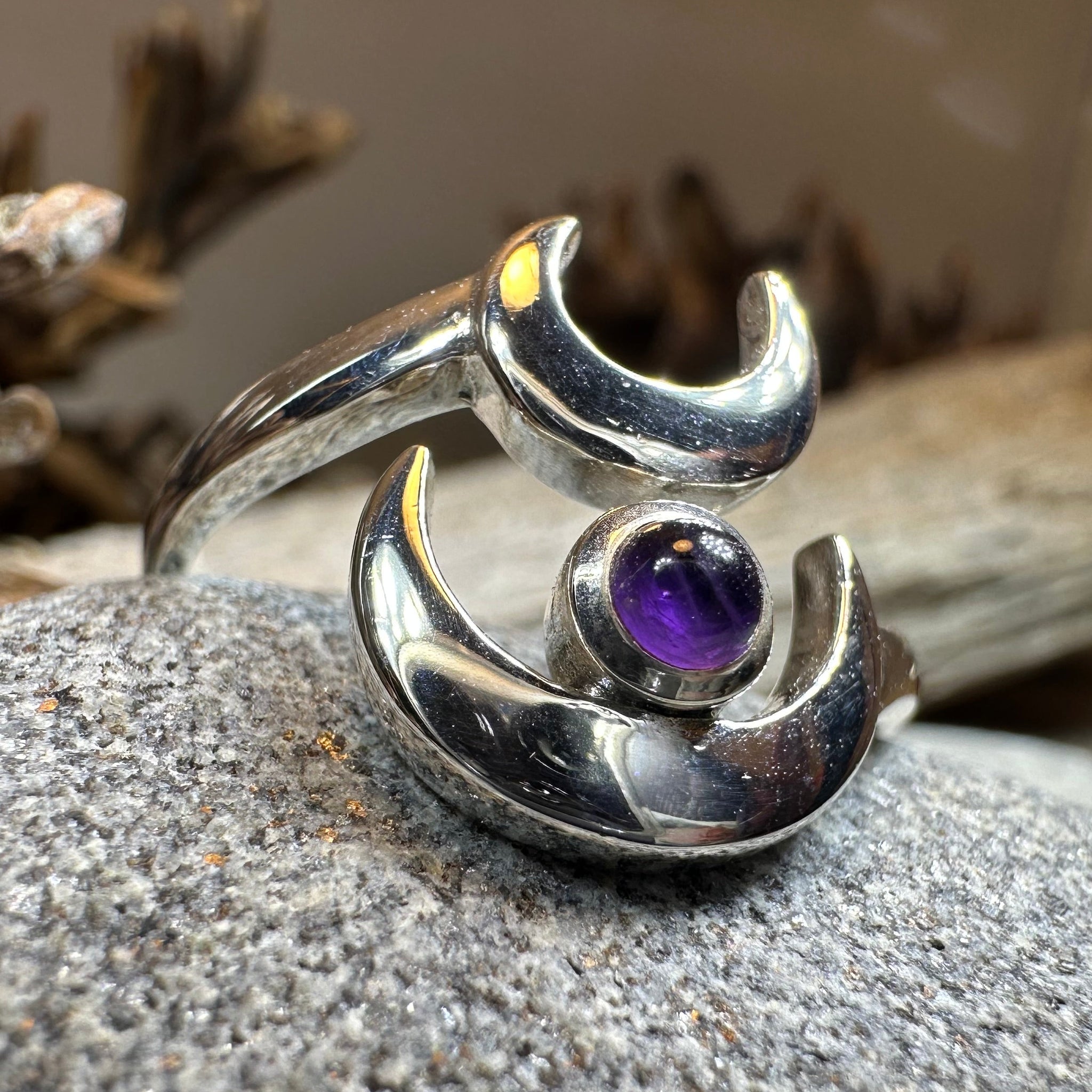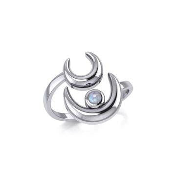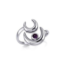 A unique design of a double mystical crescent moon accented with bright authentic gemstone of your choice - a delicate and feminine ring in solid sterling silver.