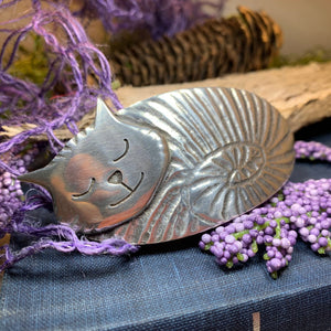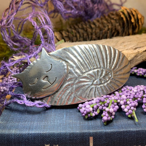 Pewter Cuddly Cat Hair Clip is a perfect accessory to dress up a ponytail, bun or any hair style. The detail on this piece is amazing - you can see every detail! This little cat taking a little cat nap - so sweet!