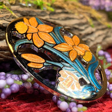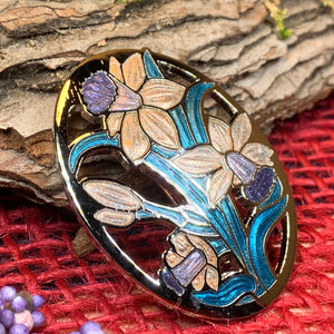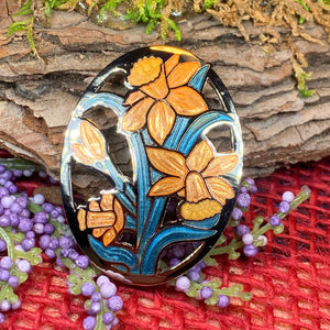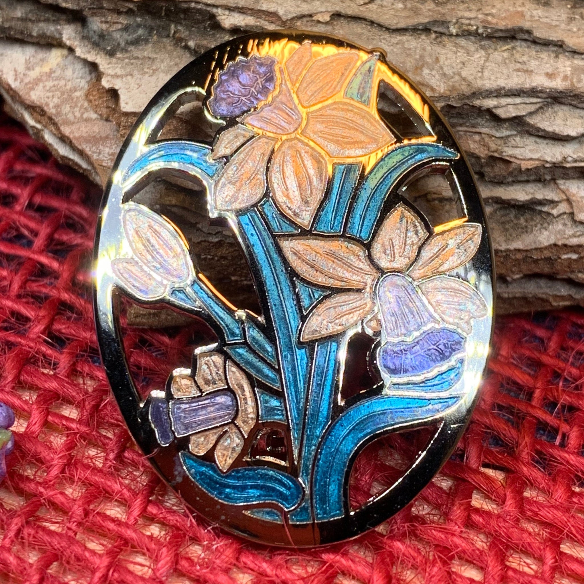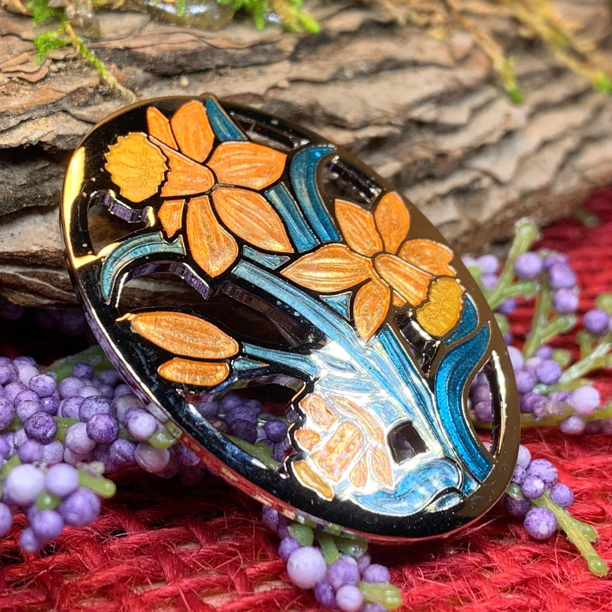 This beautiful Daffodil represents strength, family and heritage. A beautiful brooch made in silver-tone over pewter that will never tarnish or rust.