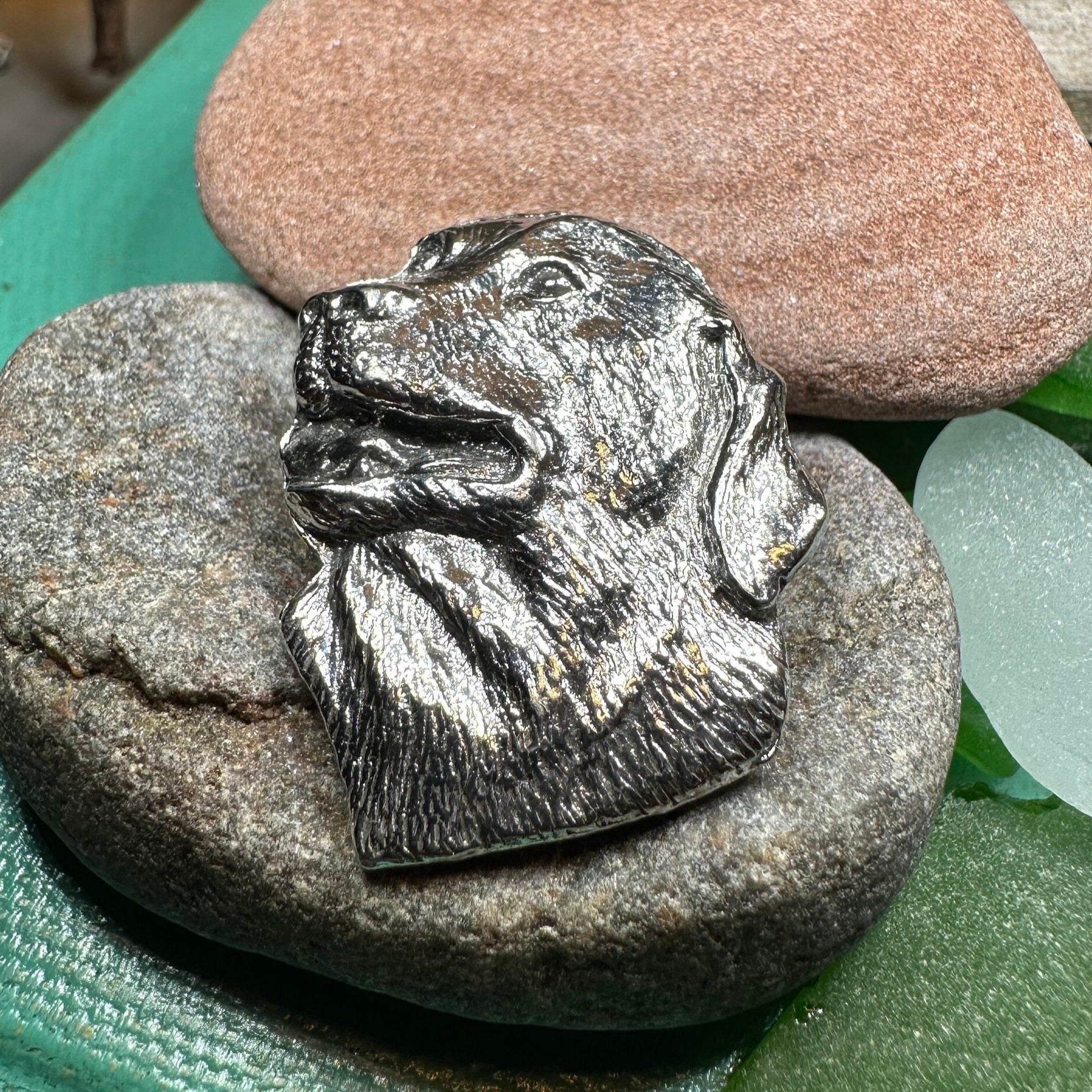This lovely piece was created using lead-free pewter. The realistic detail of the pin will dazzle...from the floppy ears to the serious look on this dog's eager face!
