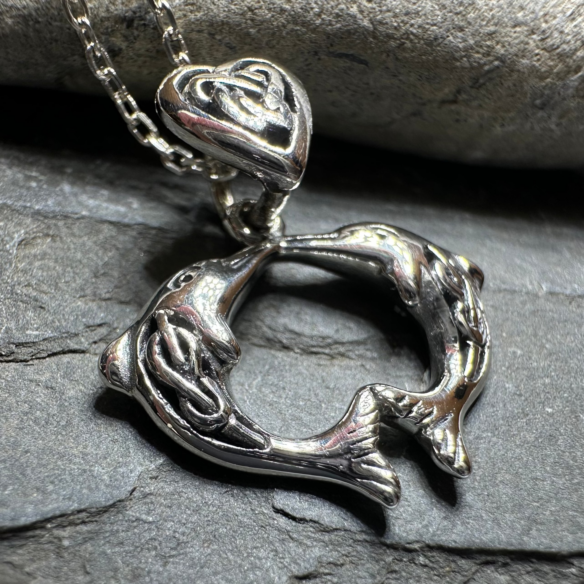 Celebrate the playful spirit of the sea with the Dolphin Love Necklace. Inspired by the joyful dolphins often seen along the coasts of Scotland and Ireland, this necklace captures their charm and energy.