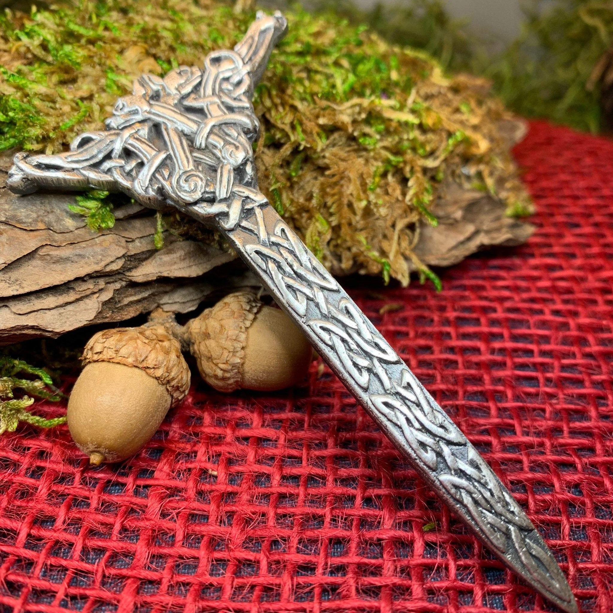 This beautiful kilt pin is in the traditional design of two stylized Celtic dragons with the twists and turns of a Celtic knot. A strong pin to handle any kilt apron or tartan - also perfect for any coat, sweater or shawl.