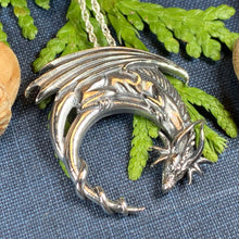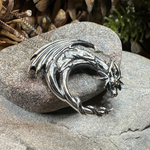 A beautifully detailed dragon with wings spread and claws raised is a beautiful work of art in solid sterling silver. You can embody the ferocious power of the dragon with the Dragon Moon Silver Pendant.