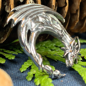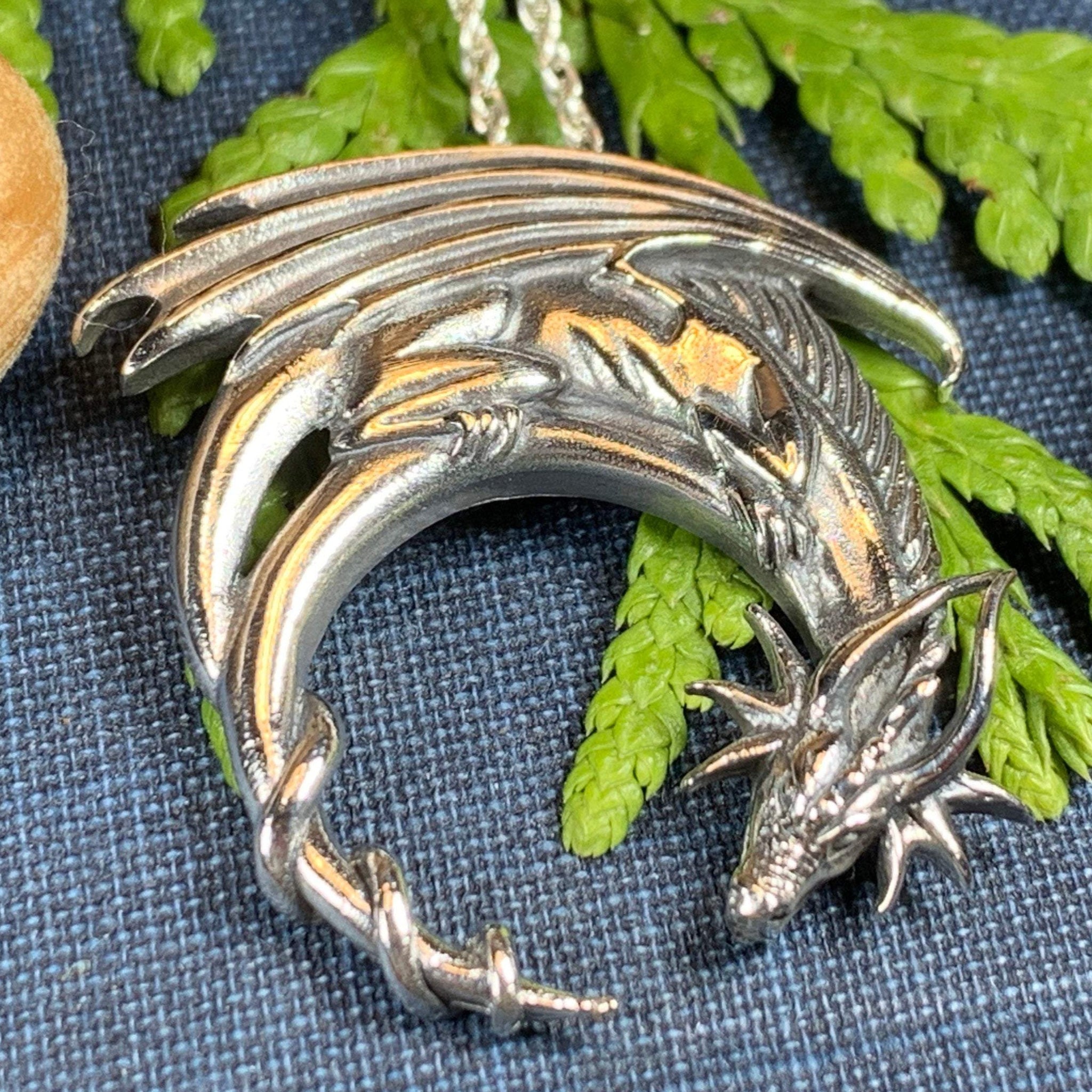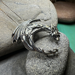 Discover your inner strength with the stunning Dragon Moon Necklace. Crafted with intricate details in solid sterling silver, this pendant is a true work of art. Unleash the fierce and powerful energy of the dragon and make a bold statement with every wear.