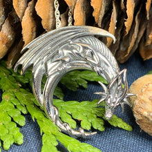 Solid Sterling Silver Dragon Moon Pendant on an 18" chain.