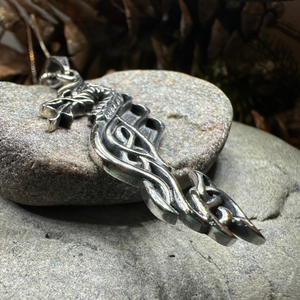 Solid Sterling Silver Celtic Dragon Pendant with polished finish.