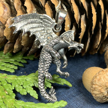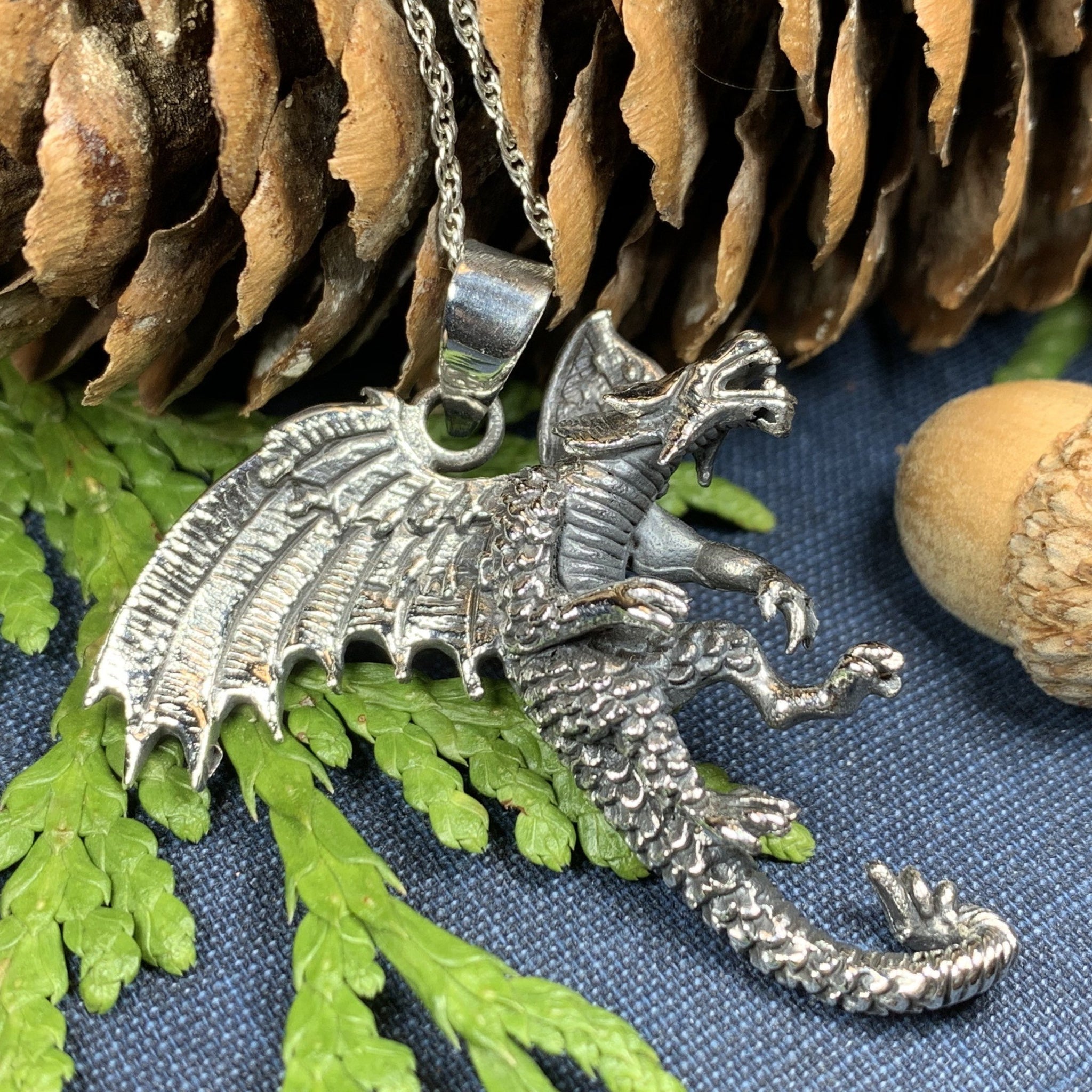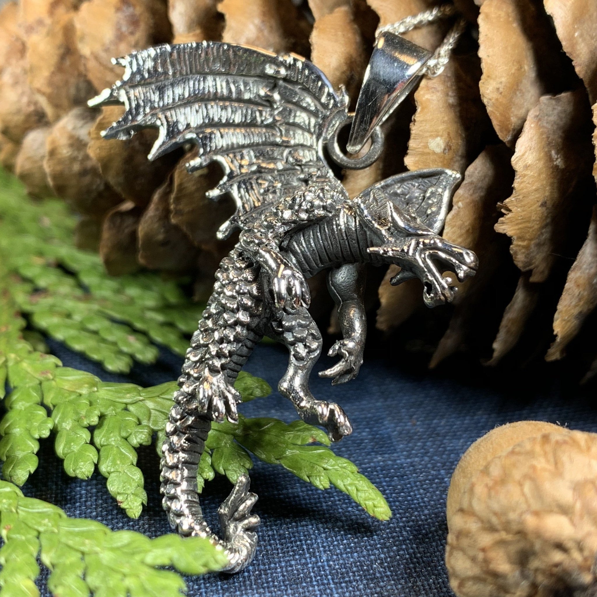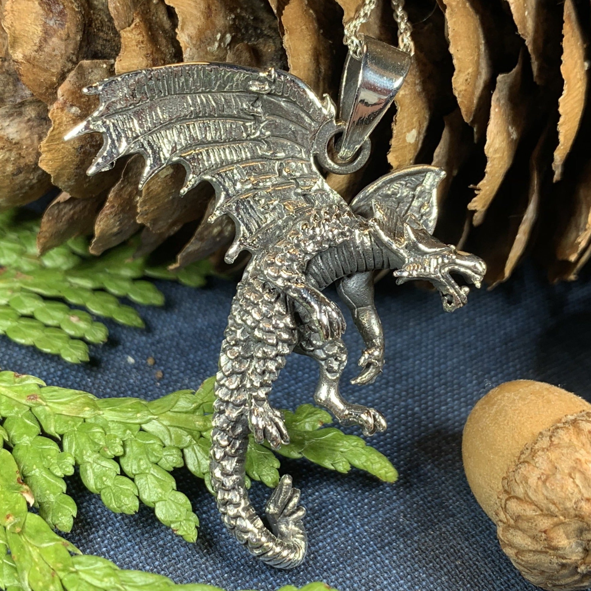 A beautifully detailed dragon with wings spread and claws raised is a beautiful work of art in solid sterling silver. You can embody the ferocious power of the dragon with the Clawing Dragon Silver Pendant.
