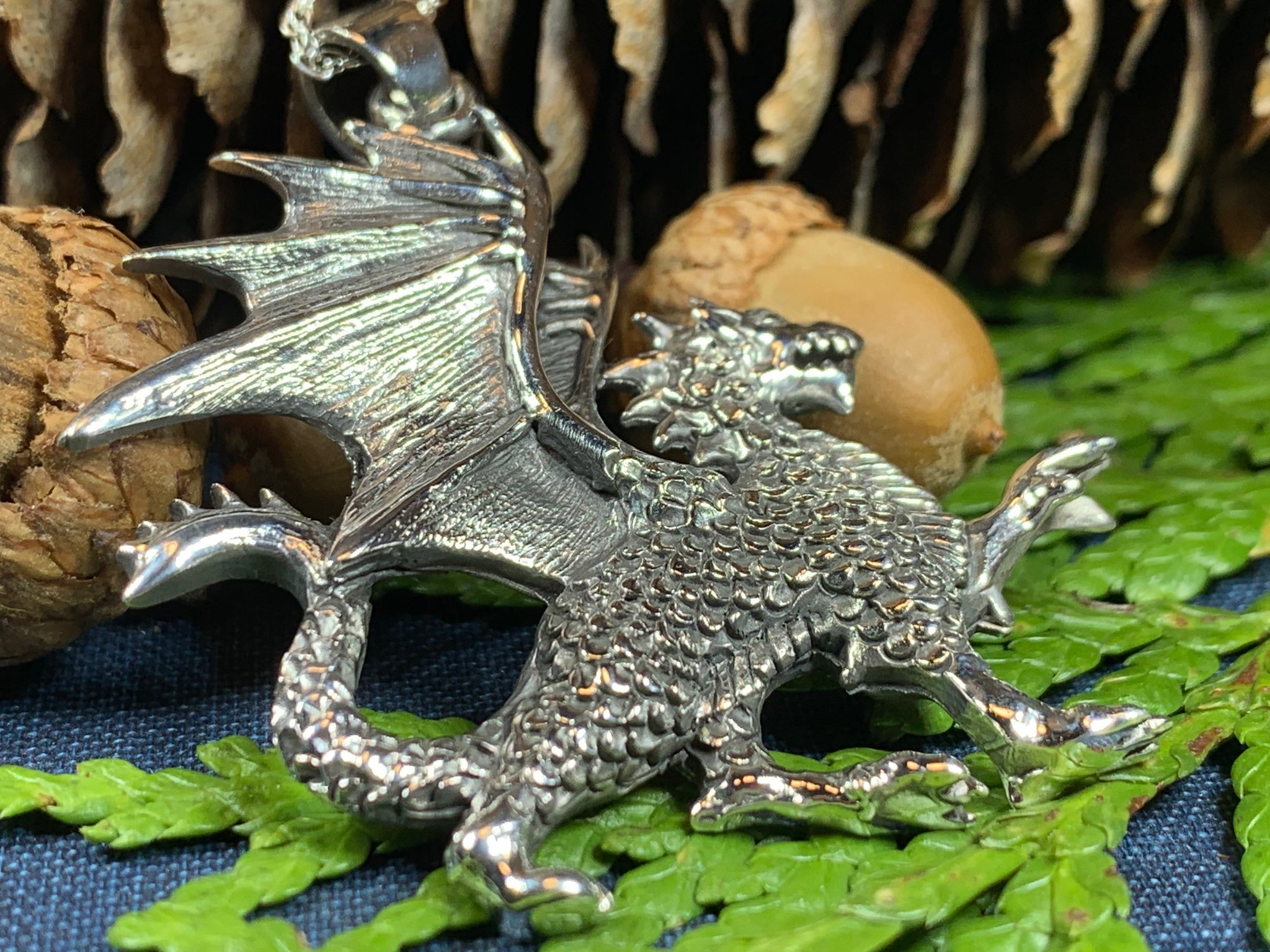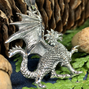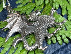 A beautifully detailed dragon with wings spread and claws raised is a beautiful work of art in solid sterling silver. You can embody the ferocious power of the dragon with the Clawing Dragon Silver Pendant.