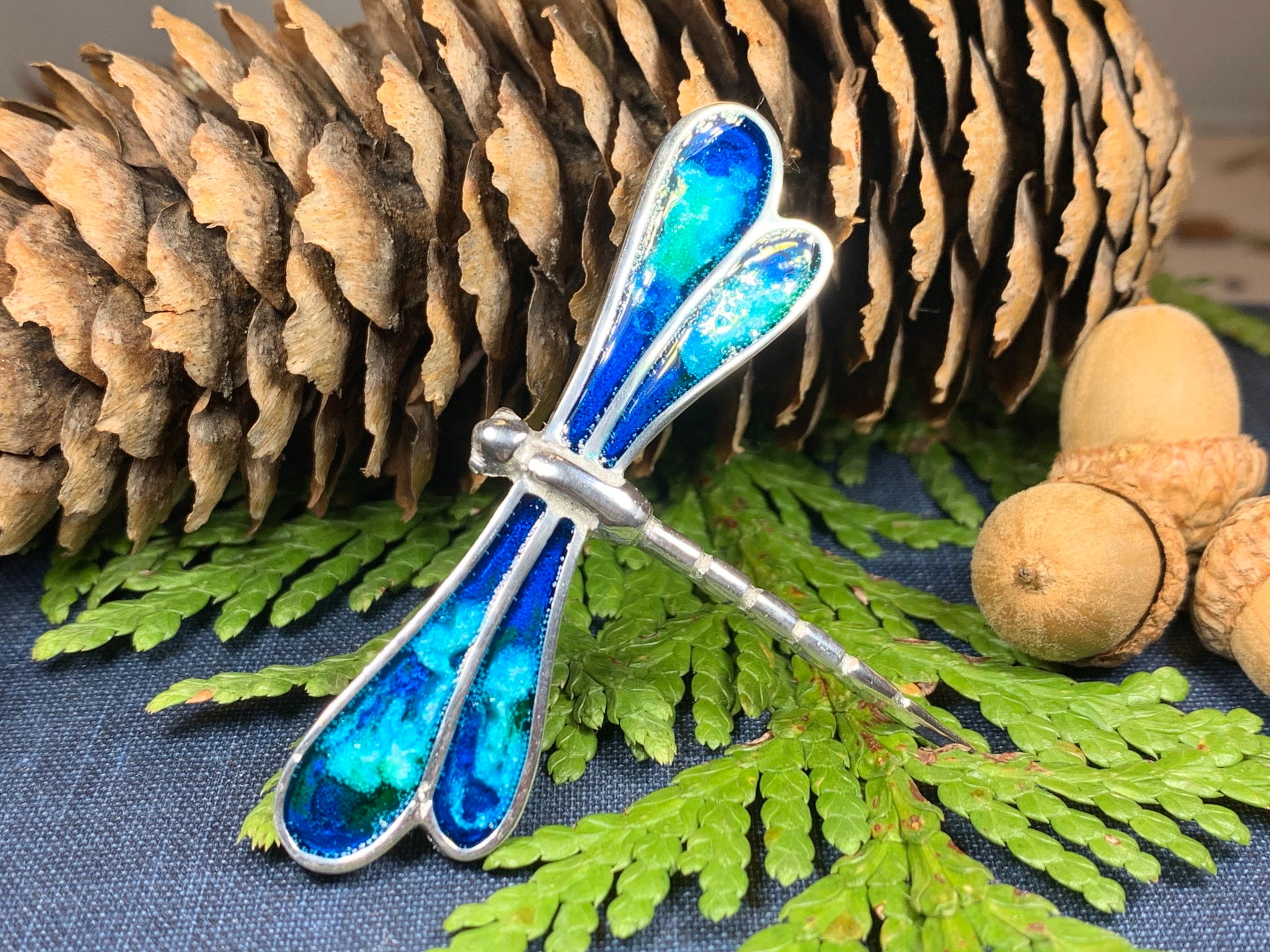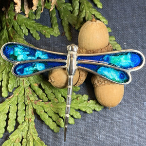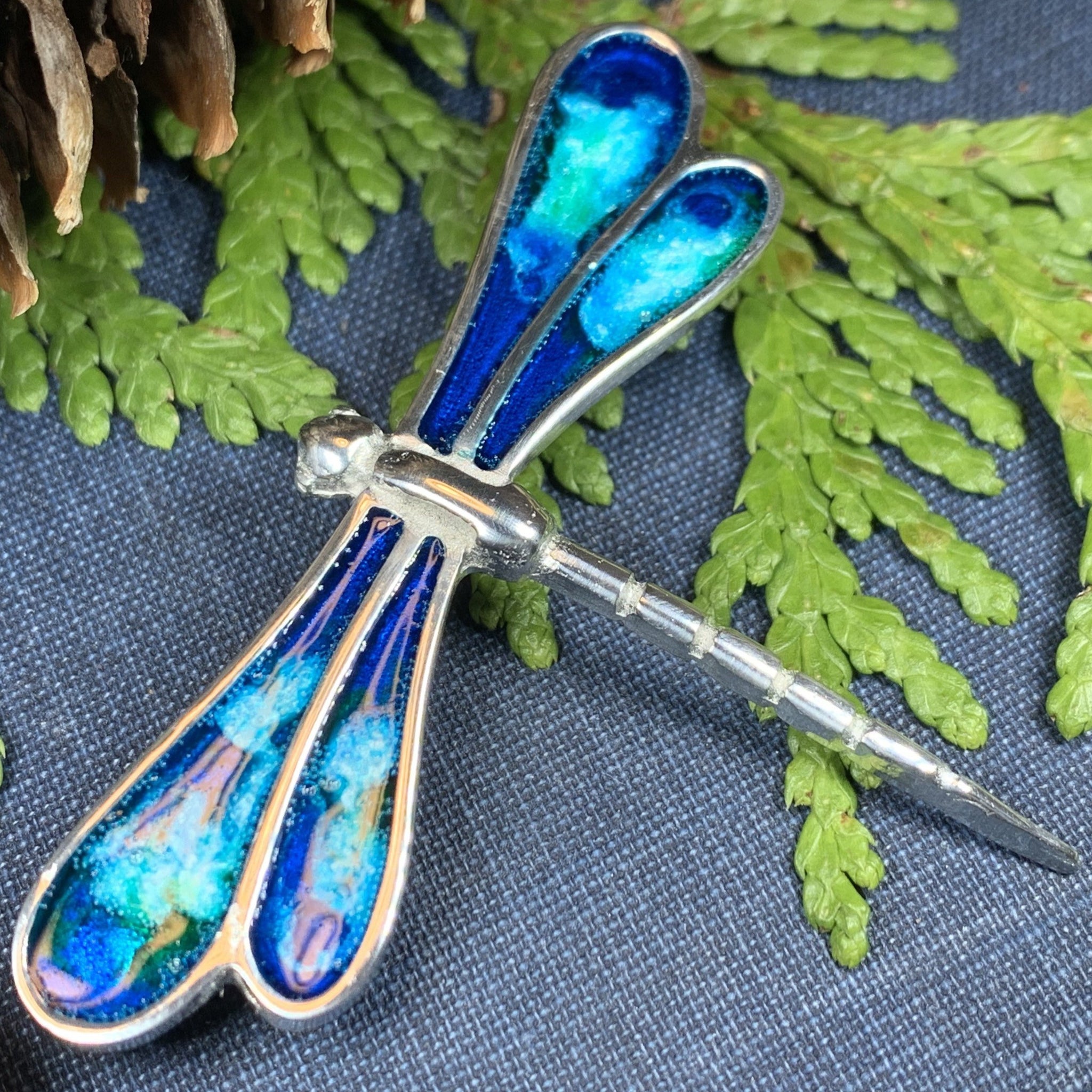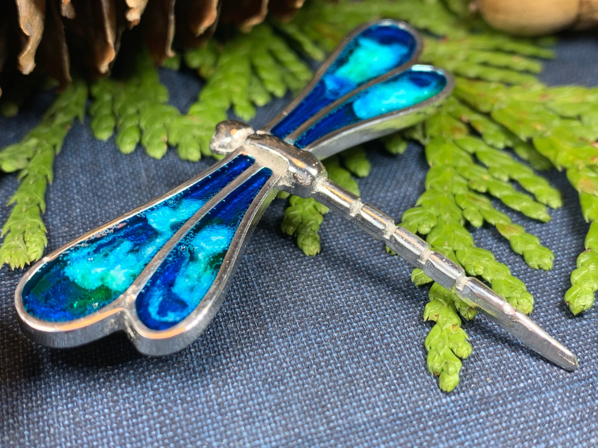 Beautiful solid pewter dragonfly brooch with stunningly colorful wings - a wonderful symbolic gift for someone you love, or for yourself.