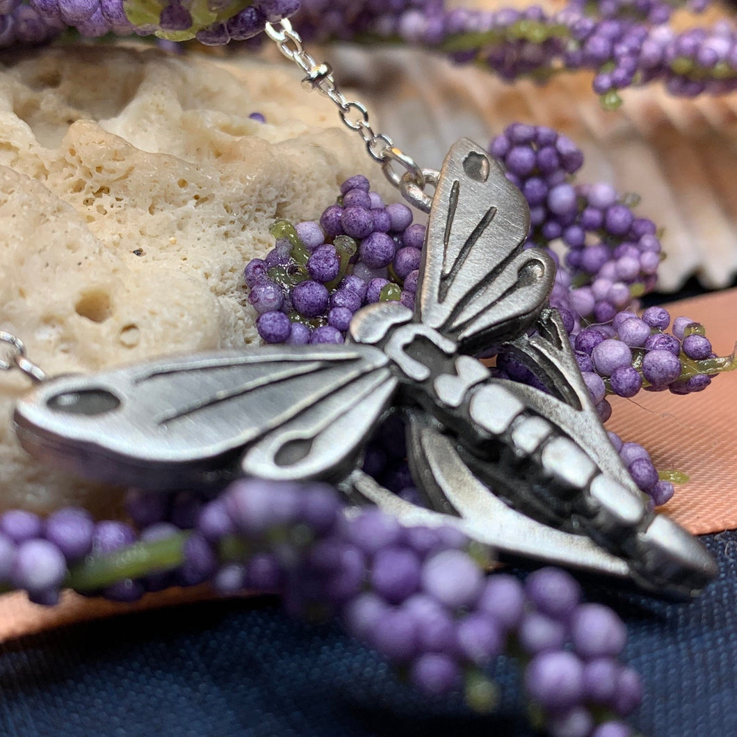 Made of solid pewter with realistic Art Deco style detailing, this dragonfly necklace will quickly become a favorite.