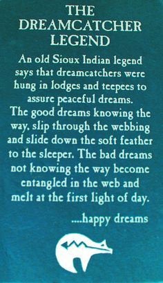 When hung above where the morning sunlight can hit it, the dreamcatcher attracts and catches all sorts of dreams, good or bad, into its web. Good dreams naturally pass through and comfort you, while the bad dreams are caught up and destroyed. Follow through your dreams as you go along your chosen path in this world.