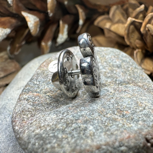 Size - 1/2 x 1/2" with a pinch pin clasp. Solid pewter.