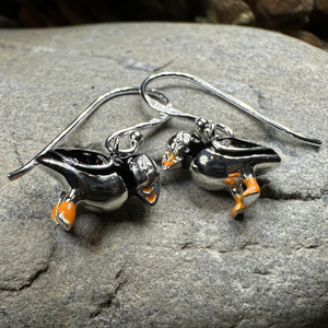 These beautifully well done earrings are full of Scottish pride! These earrings look very sweet and joins together the beauty of sterling silver with the puffin beautifully!