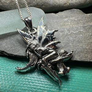 Solid sterling silver Mushroom Butterfly Fairy Pendant on a chain -- Legends whisper that the fairies live within the wild woods among the ocean of lavender and blue daisies.