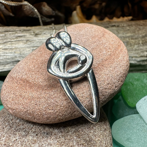 This modern interpretation of the traditional Celtic knot includes a mother, father and child giving this piece the special meaning of a mother and father's eternal love for their child. This love is unbreakable!