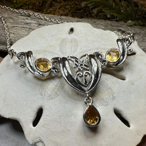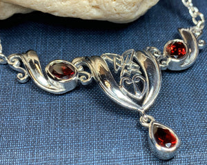 Solid sterling silver with your choice of 5 carats of gemstone: garnet, citrine, blue topaz or amethyst center stone.