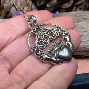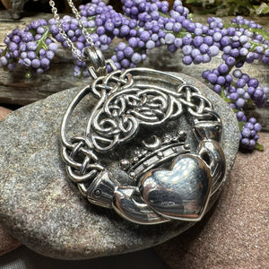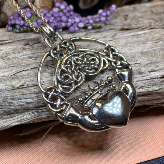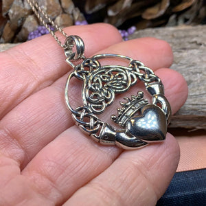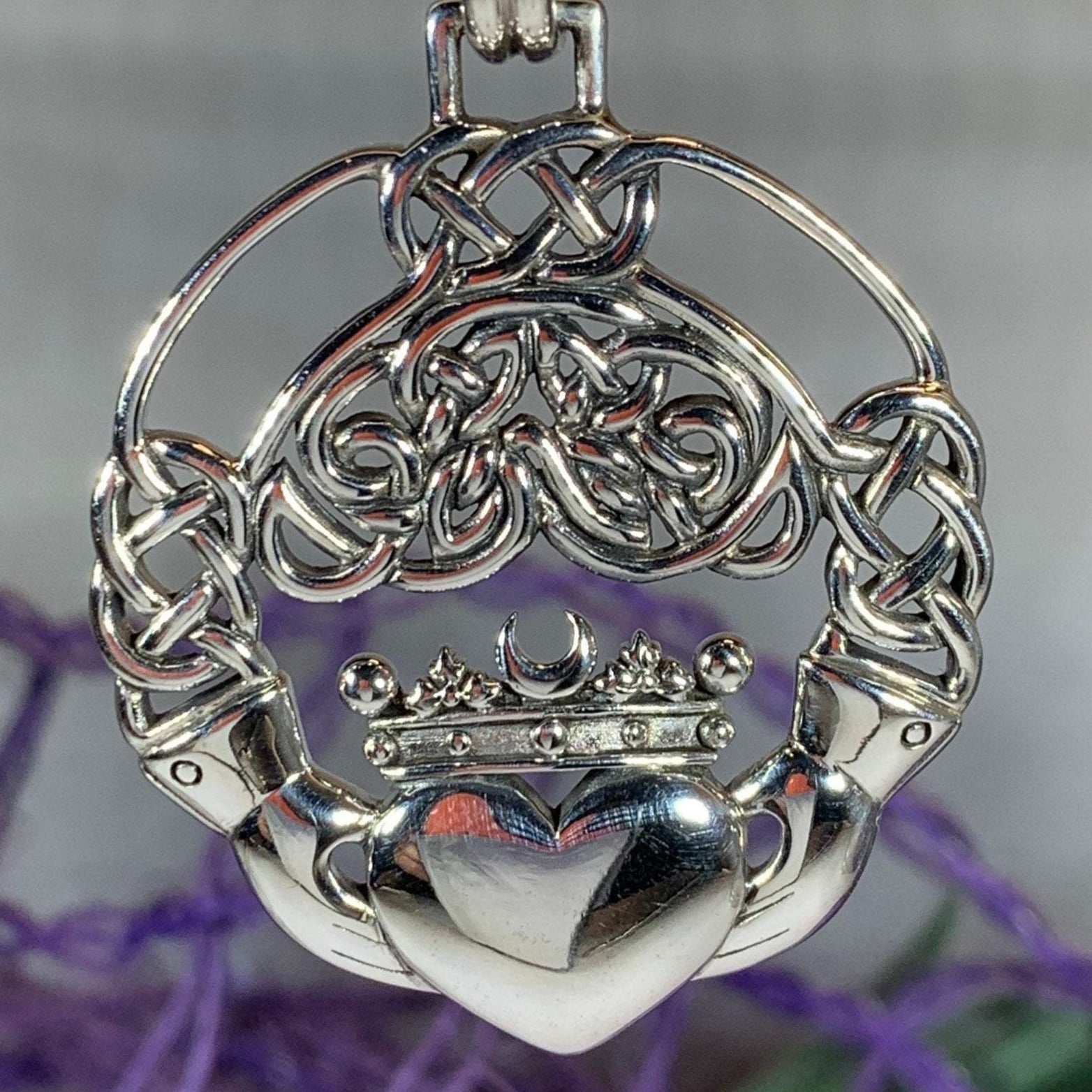 Solid sterling silver Claddagh pendant on an 18" sterling silver chain