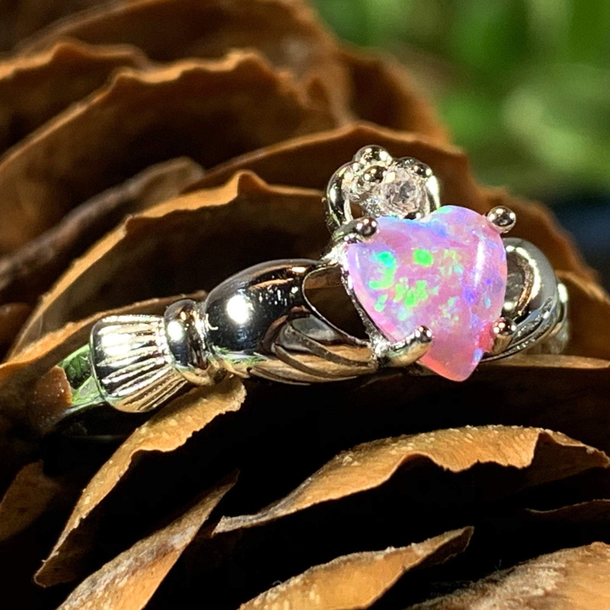 Choose from sizes 4-12 - heart shaped pink opal stone