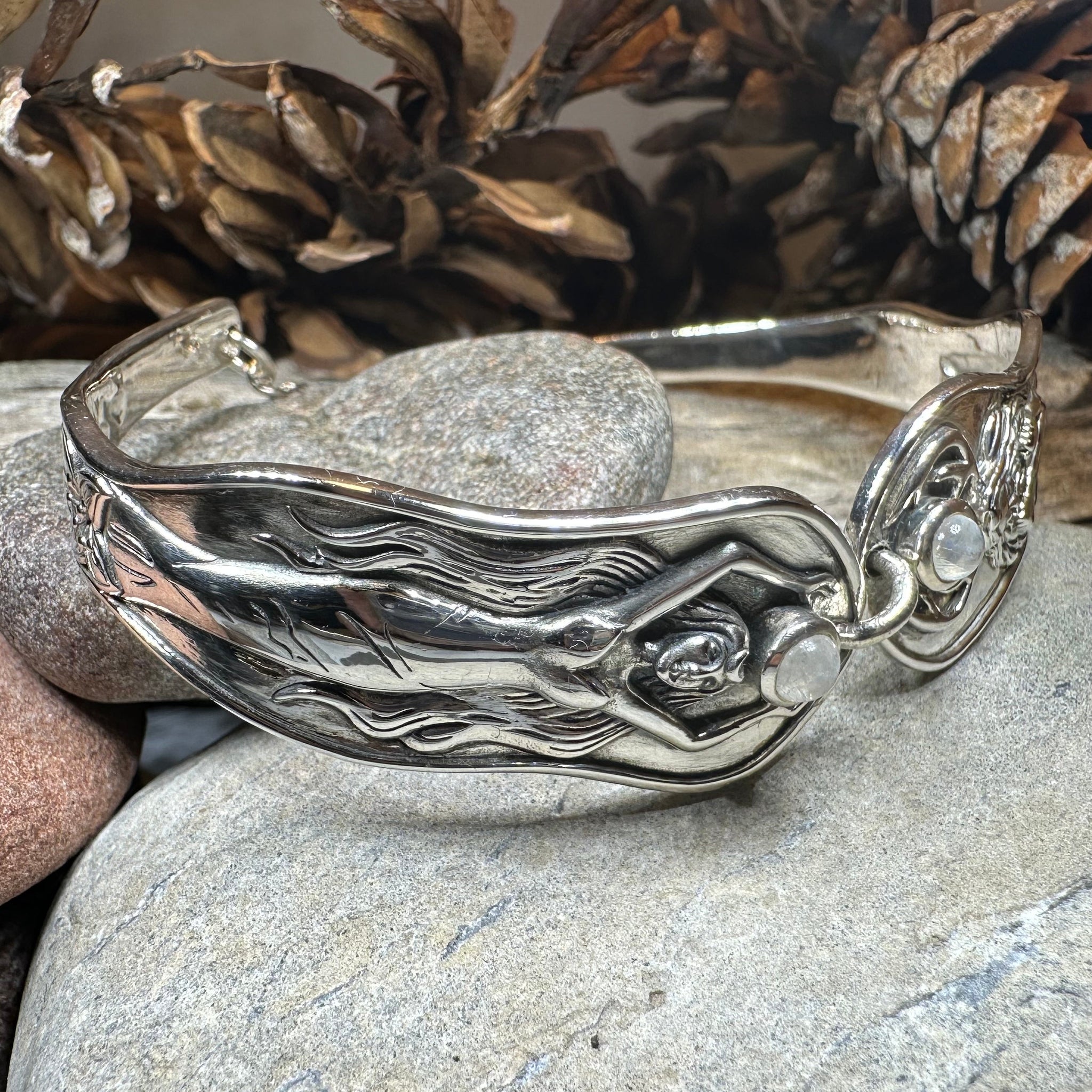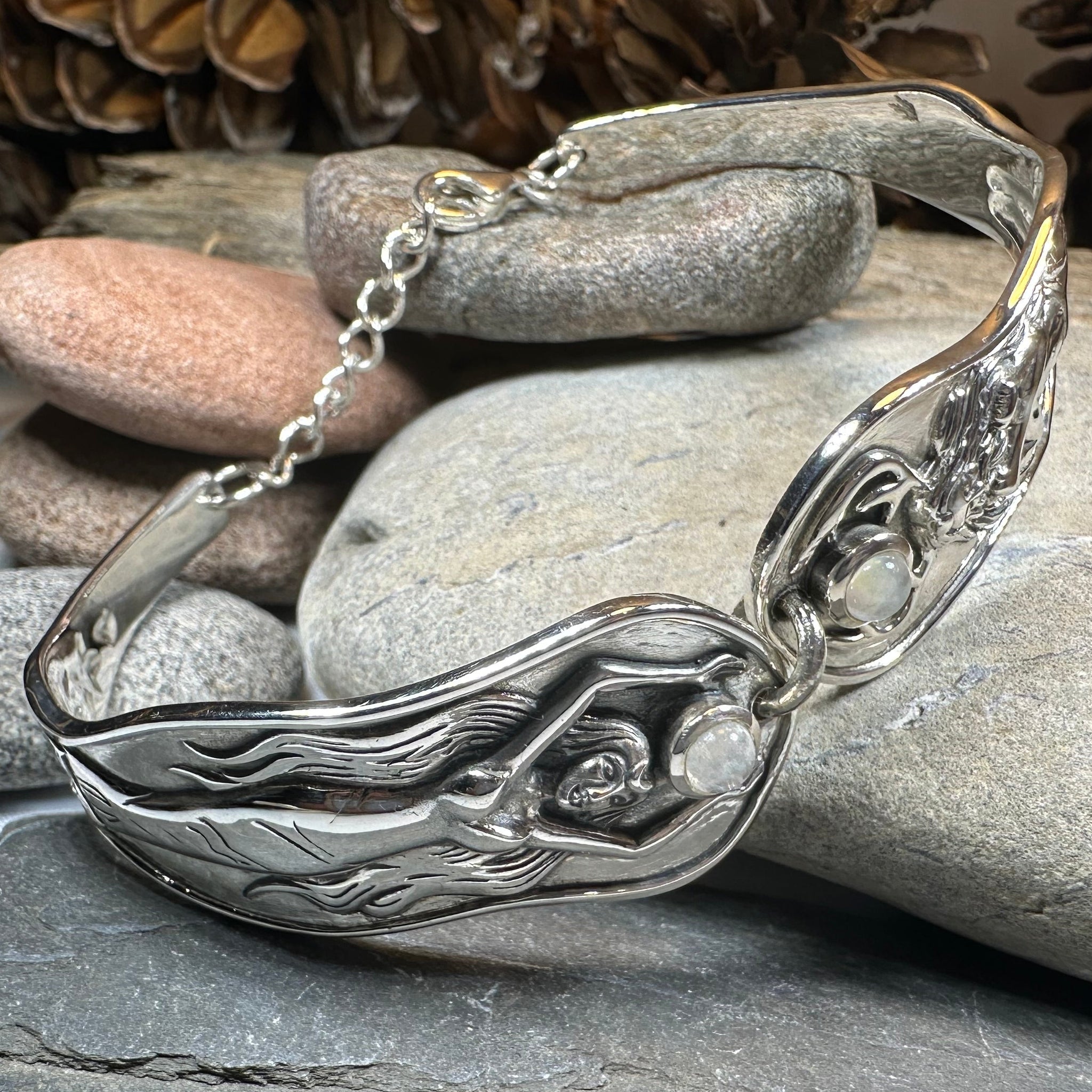 This wearable work of art celebrates mythological duality while the moonstone's gentle energy is believed to inspire intuition and inner wisdom.