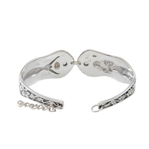 Lily flowers and oak leaf details on either side make this bracelet a work of art.