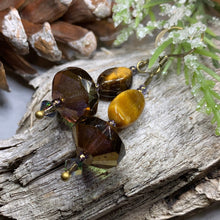 Czechoslovakian beads fire beads and Swarovski crystals come together with natural golden tiger's eye to create these beautiful artisan earrings.