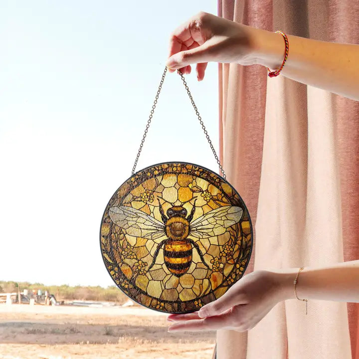 This Golden Bee window art glows in beautiful colors. With vibrant colors and - a perfect and colorful scene that will bring you joy every time you see it!